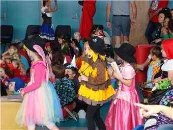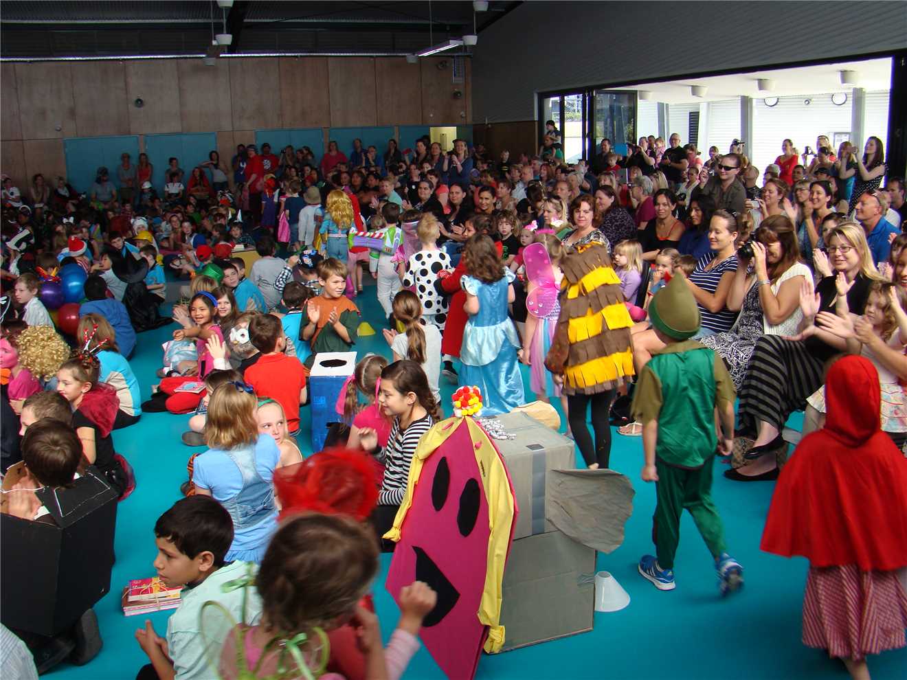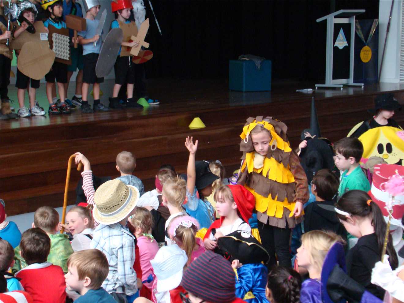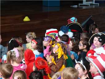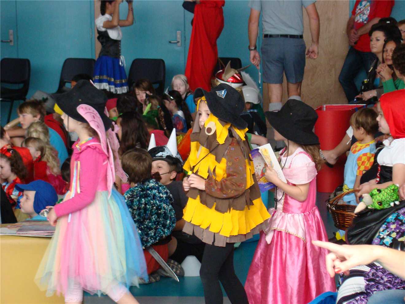 It was the WHOLE school, all dressed in their book costumes. Marg and I dropped Mont in her classroom and had a quick chat to her teacher and then we