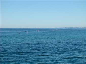 old fart) and that he has never seen a whale off the beach. After they swam out of range, we rode back to Southport YC where I showed him