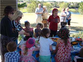 as well as big eels in the lake. About 2:30pm, we sang "Happy Birthday" the wind blew out the candles, well actually, blew out the cigarette lighter, but