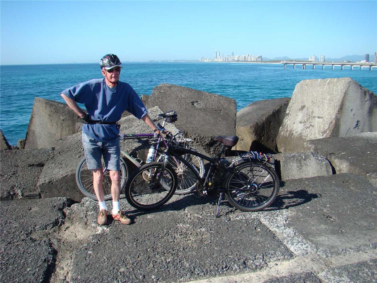 The 'real old fart' at the end of the Spit with his new 'power assist' bike.