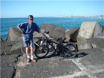 Dad with our bikes opposite Cavill Ave (our meeting place).
