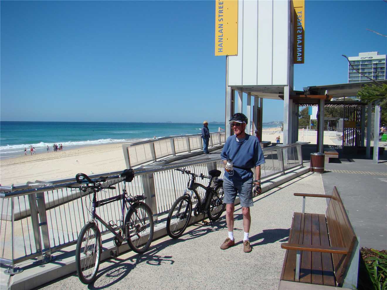 I left the caravan park at 7:30am to meet Dad at Cavill Ave and the beach at 8am. Dad was riding from Mermaid Beach, we again both arrived about 7:55am
