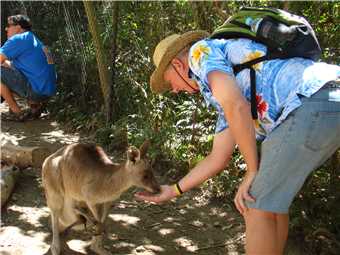 Feeding the roos. Check out the pouch.The Outrigger race.
