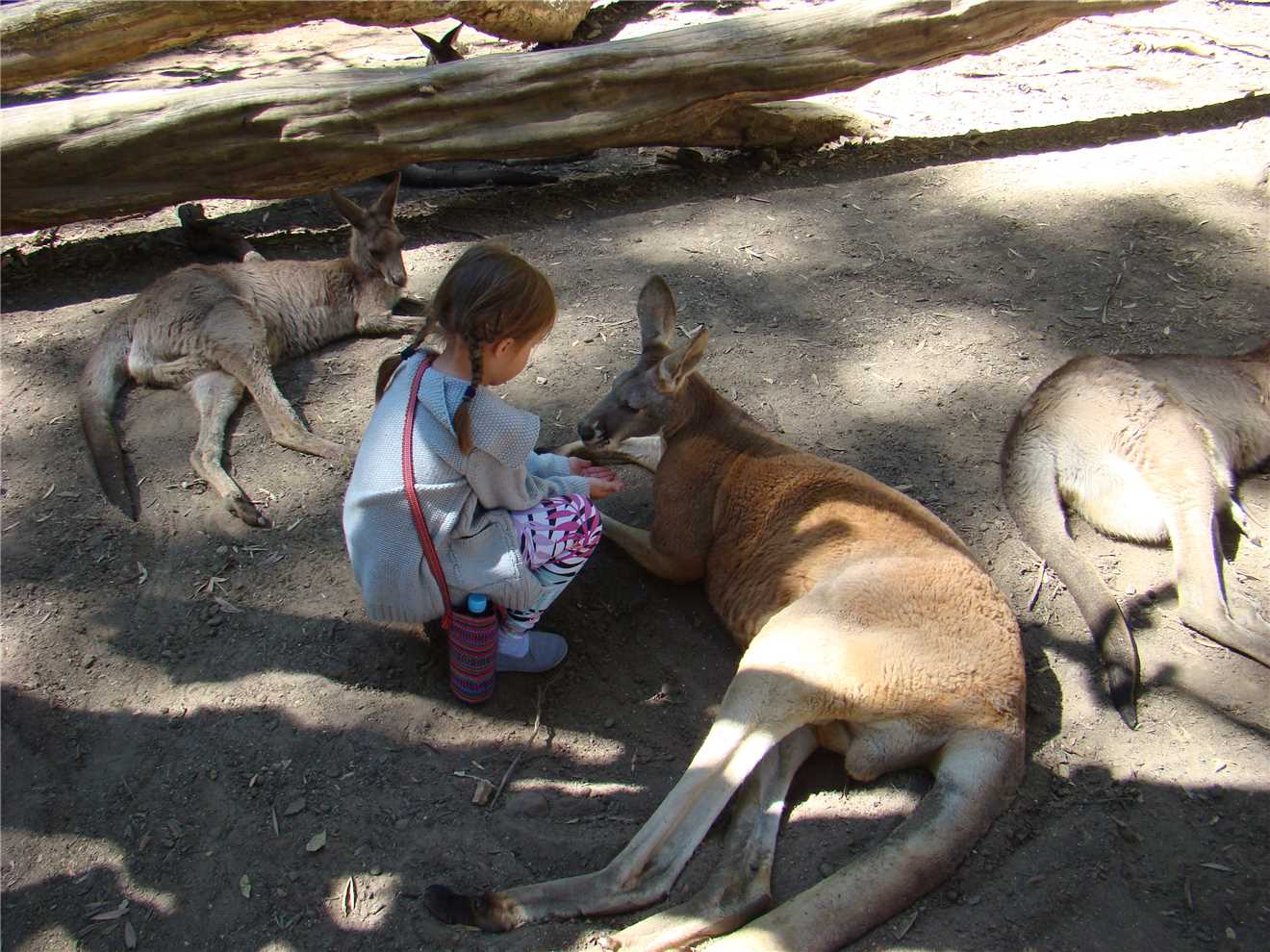 and then caught the train to the Kazngaroo feeding area, Mont loved feeding the roos then we did a full lap of the park and then went to the gift shop and