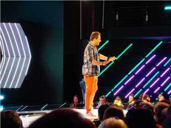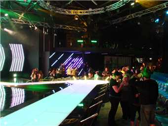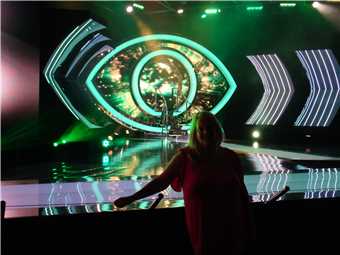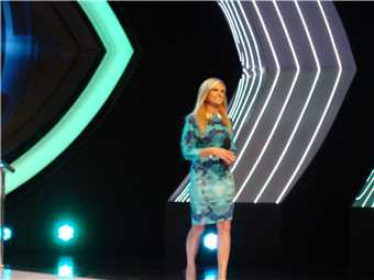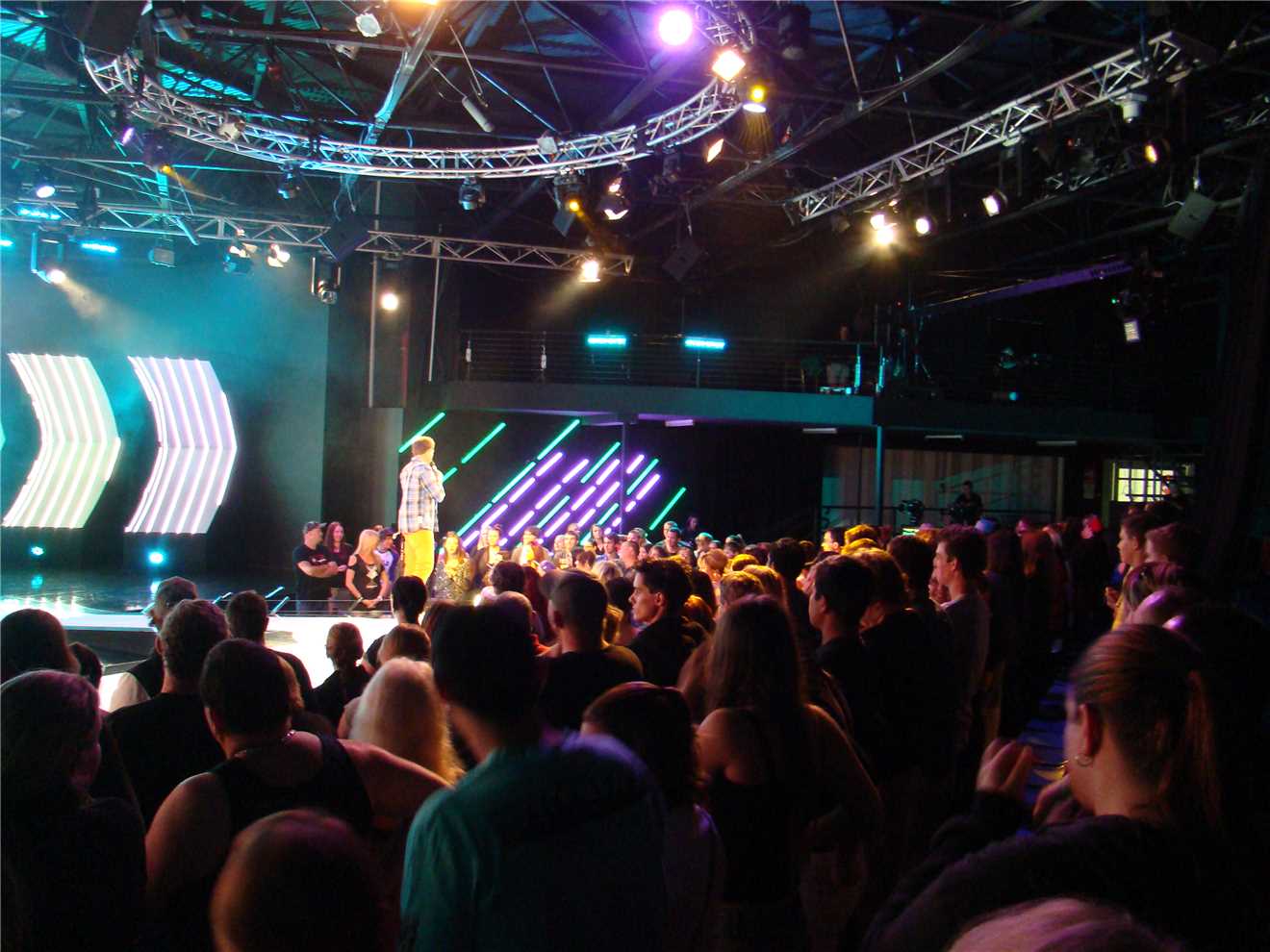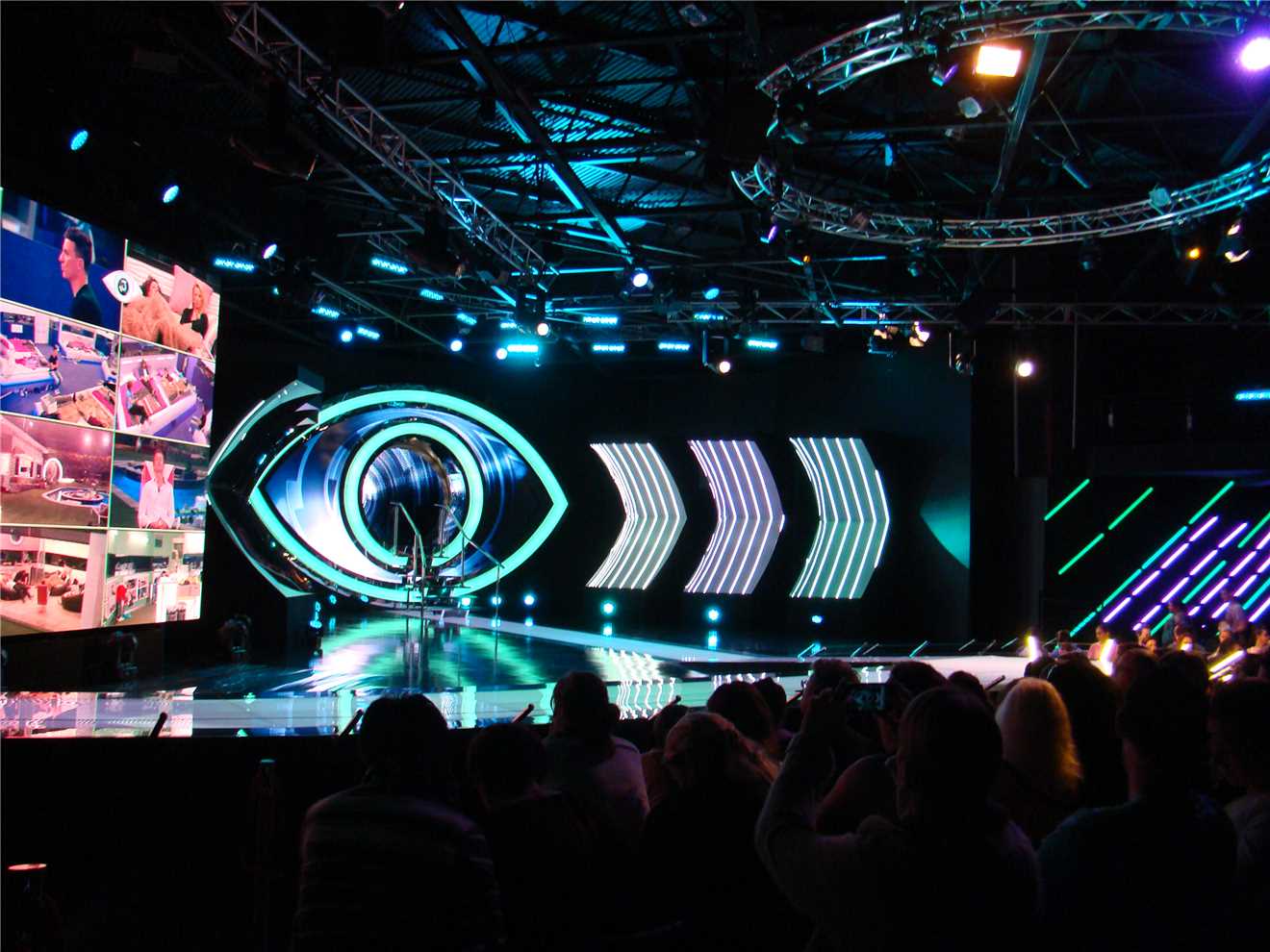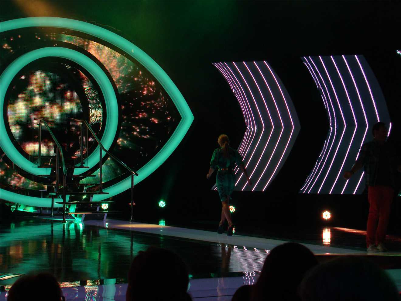 Sonia was rehearsing some bits before the live show. Middle photo was The big TV screen showing the BB logo. Mike warming us up.