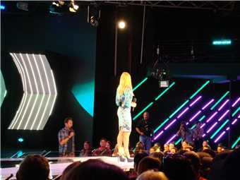 the crowd, with jokes, prizes and other crap. The girls of all ages, just screamed. Sonia looks great for a 47 year old. There were people in the front row