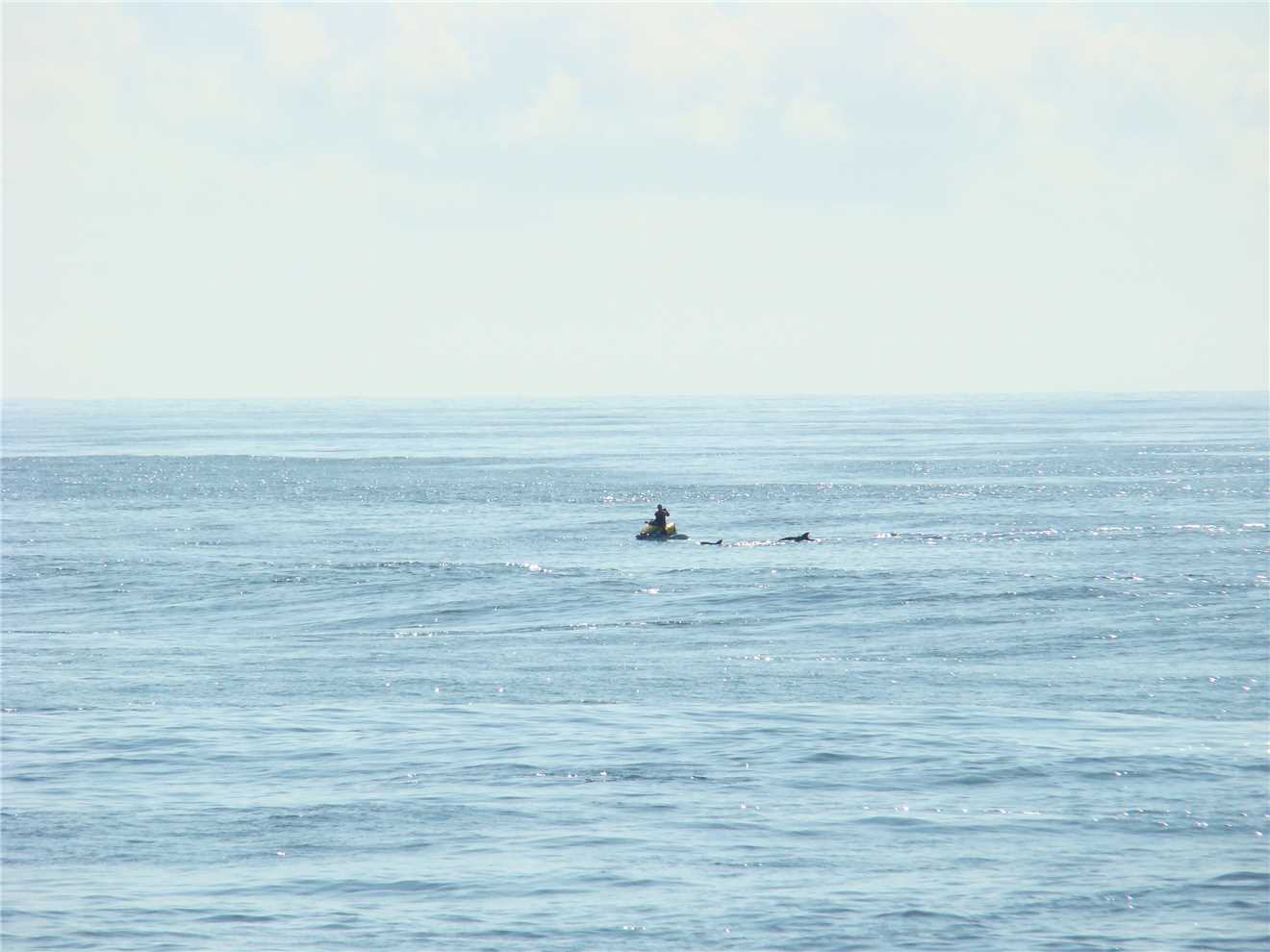 The Seaworld jetski photographing the 'tailless' dolphin.