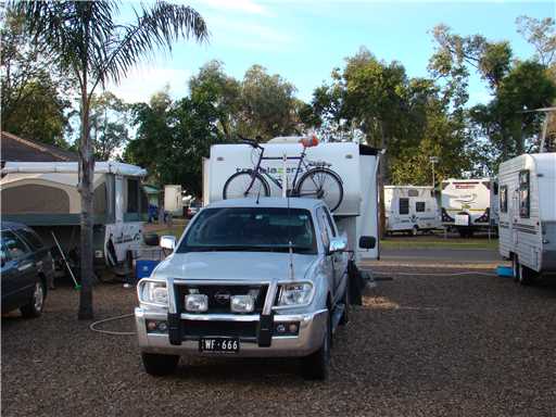 had no dramas at all. We topped up with fuel in Moree before we arrived at Gwydir CP. We managed to get a drive thru site, so we didn't have to unhitch at all,