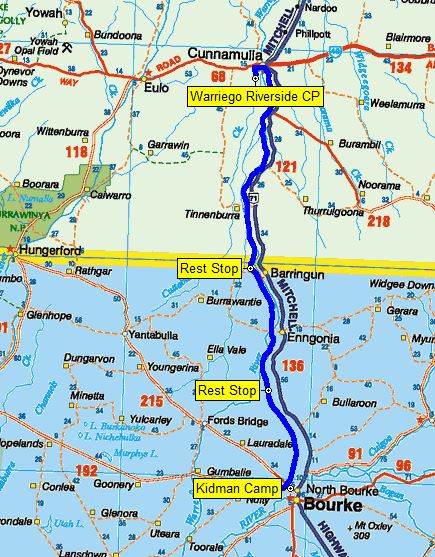 We drove through Cunnamulla and turned south just before the Warrego river and followed the river for about 4kms until we came across