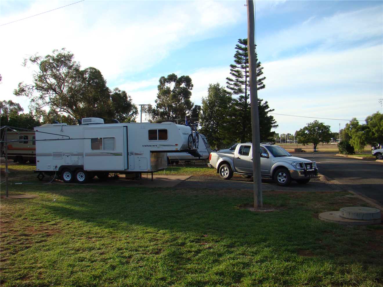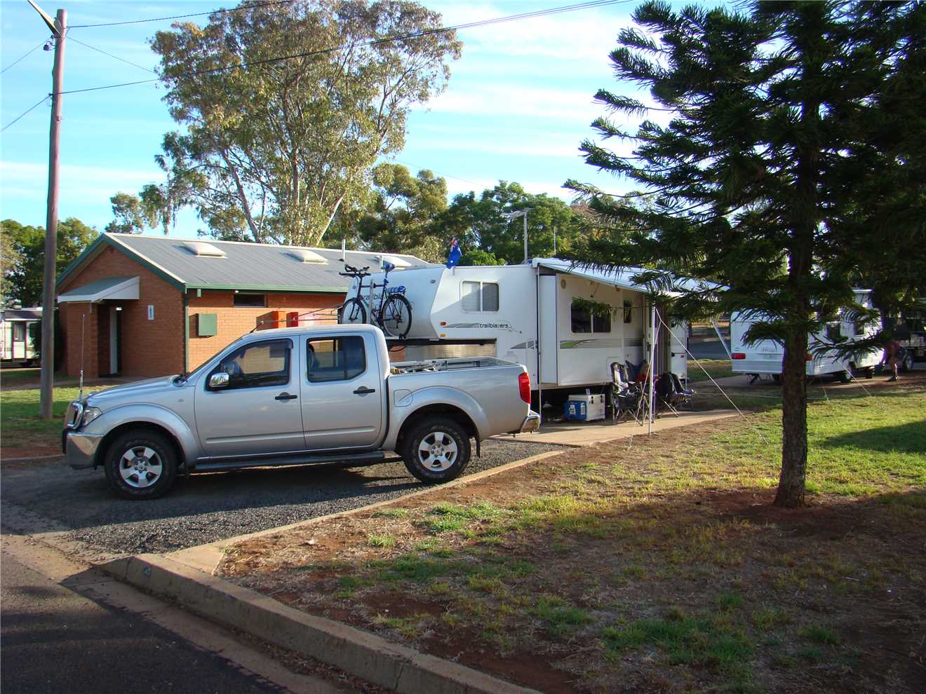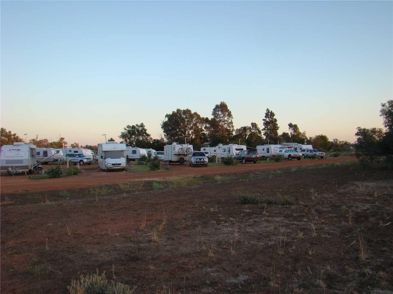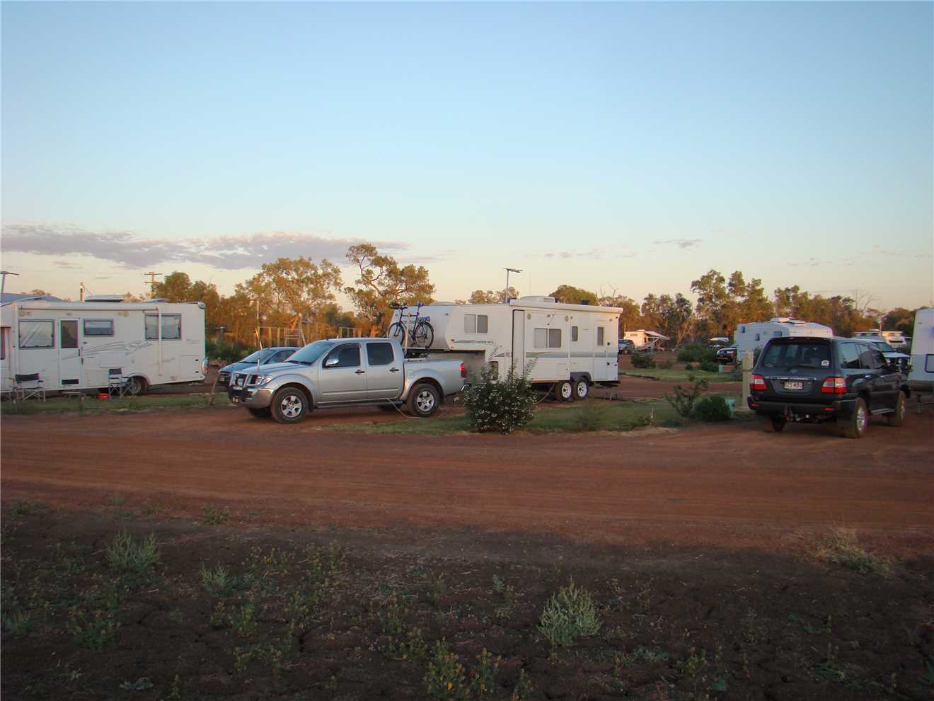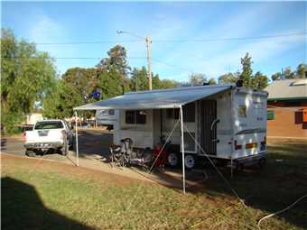 Warrego Riverside Tourist Camp run and owned by Judy Roberts. We paid Judy $32 for a powered site and headed to site 17, she told us that she has planted herbs and spices by each site and feel free to help ourselves. This Caravan park is lovely, every site is drive thru with a grass section for your awning. I did walk all of 50 meters to check out the Warrego river, it is flowing nicely.