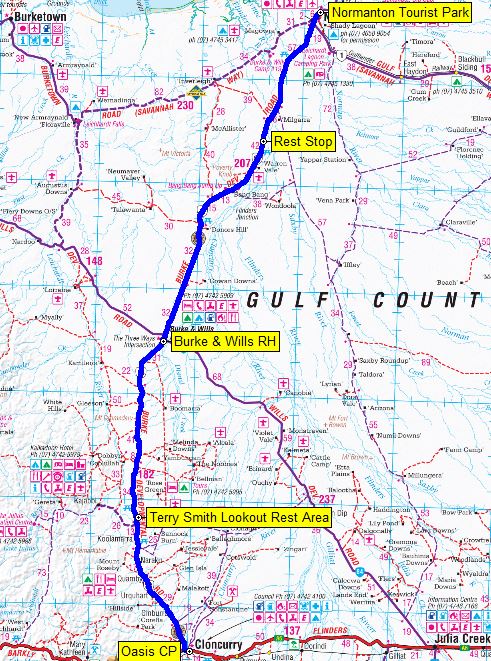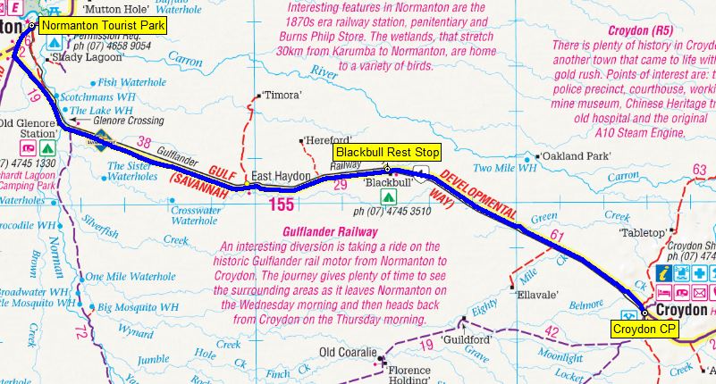 Our route from Normanton to Croydon, Qld - 155 kms.