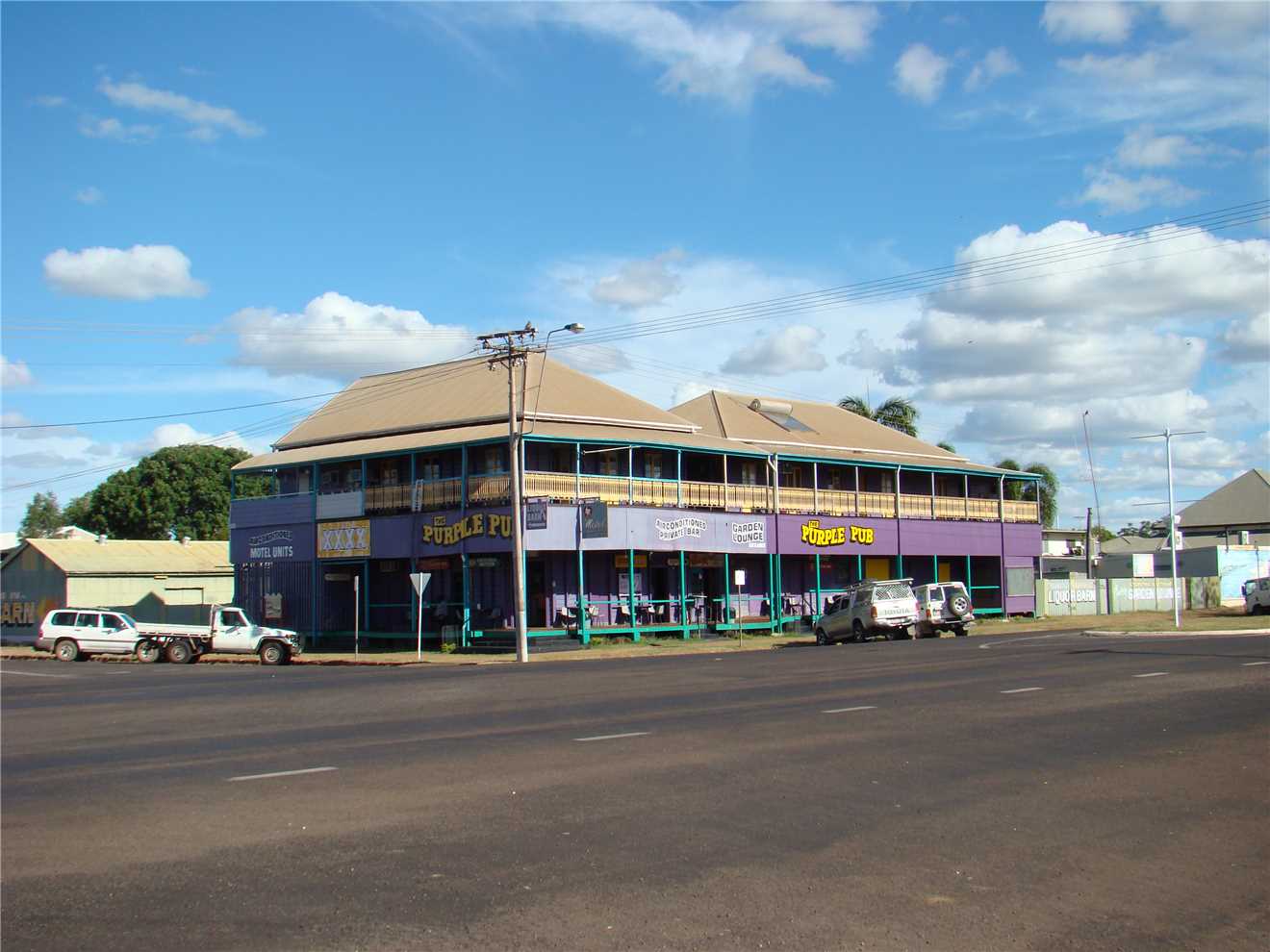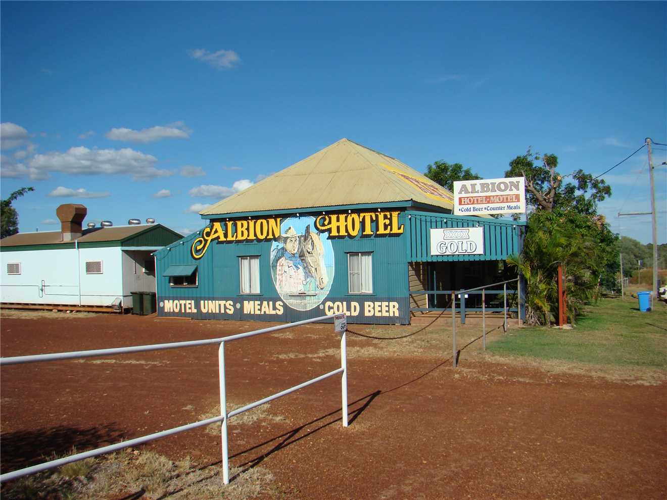 sign was correct, so I walked the 50 meters from the main street to the Albion Hotel, where I bought a stubby of XXXX Gold, cost $4.50 and yep it was cold. That has proved nothing unless you can compare it to something, so I called into the Central Hotel and did the same, cost $4.60 a stubby, and it was cold and very nice. I was on a roll so I visited 'The Purple Pub' cost $5 a stubby. In summary, Albion Hotel had the best 'feel', only 2 people including me, Central hotel had 4 people with me and the Purple Pub had about 15 people. After I finished my 3 stubbies, I took photos and walked back to camp, where we sat in the shade in 34° heat and relaxed, until a fellow camper walked over to talk and we couldn't get rid of him, he was worse than me, we talked for probably a hour, before he left.