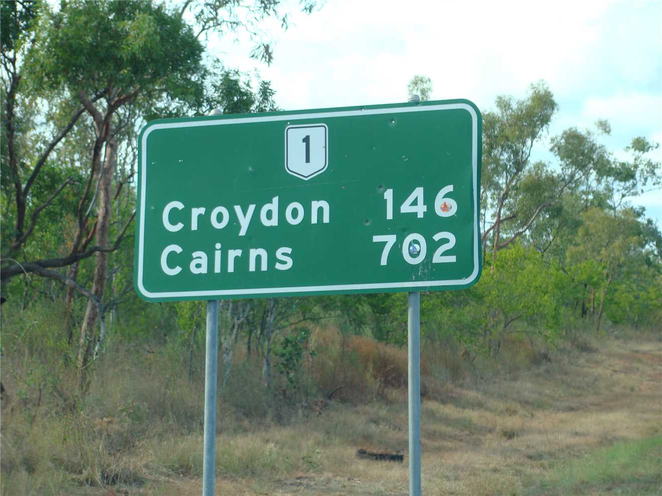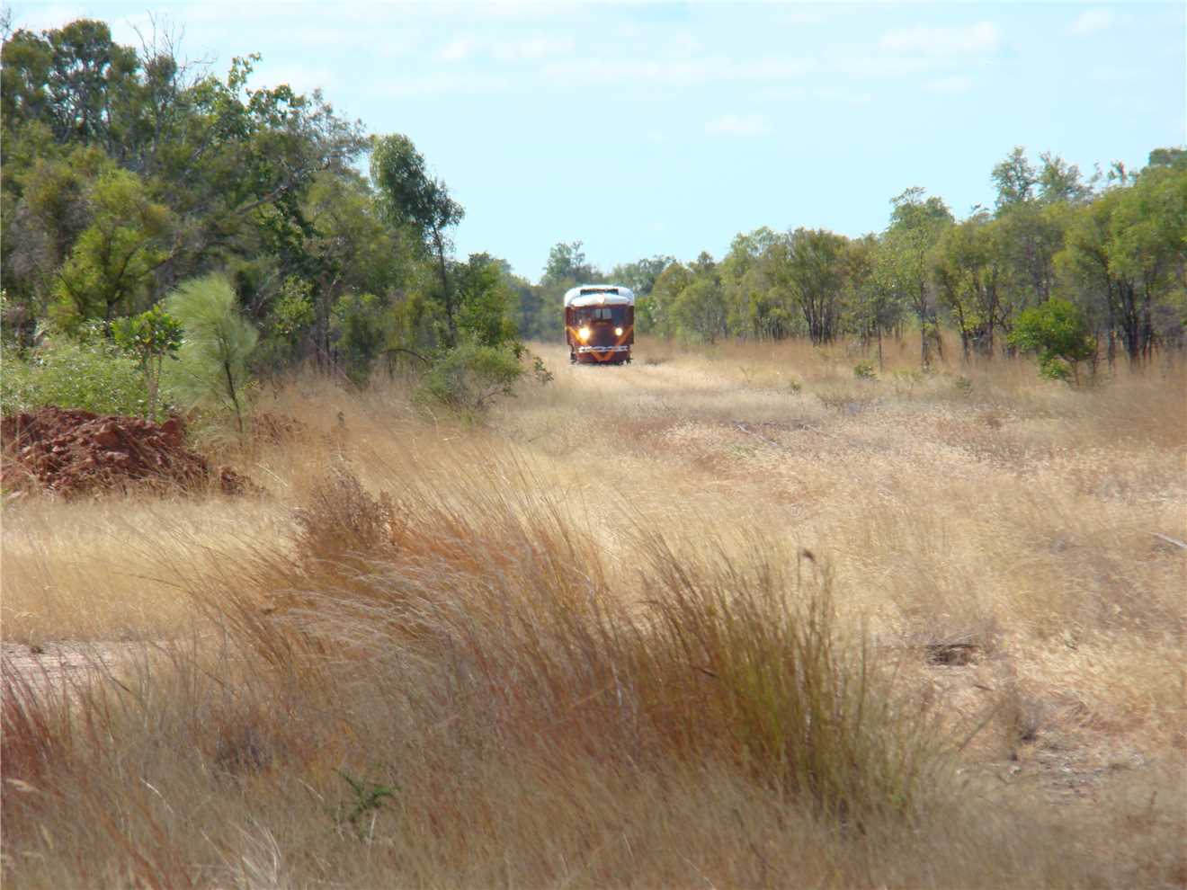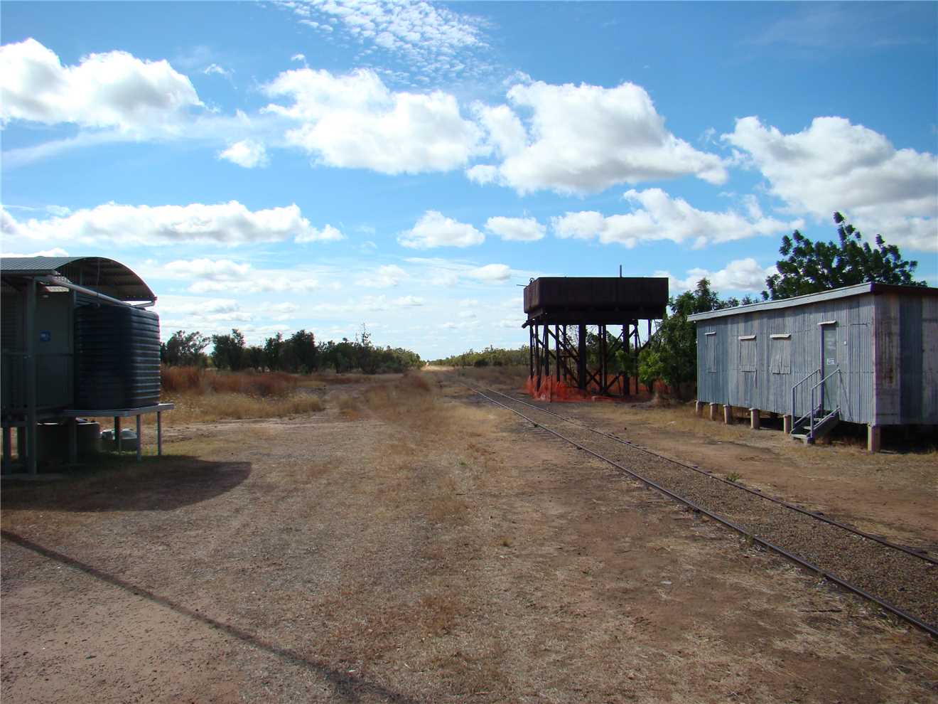 We awoke to a beautiful sunny skies with no rain clouds in sight. We laid in bed and watched Sunrise and finally got up about 7am and checked the internet before starting to pack up. We left at 8:54am and headed to Blackbull, when we arrived there were two other caravanners there and then out of the blue, came the 10:20am Gulflander, so I took some photos, just to be different. We waited until it stopped and there were only 3 people on board, the driver and two passengers, there were six of us in the welcoming committee. We only had 60kms to go to Croydon, so we set cruise back to 83kph and away we went, arriving at 11:13am. I went to the Office but it was unmanned, so I called Robbie on his mobile and we booked in and setup camp, just near the amenities block, while checking in, we confirmed that we would be attending tonight's sausage sizzle.