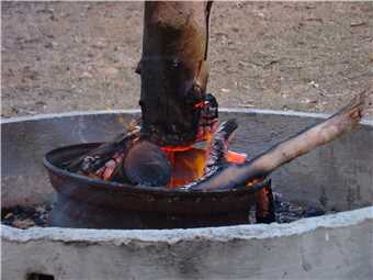 The sausage sizzle around the fire pit.