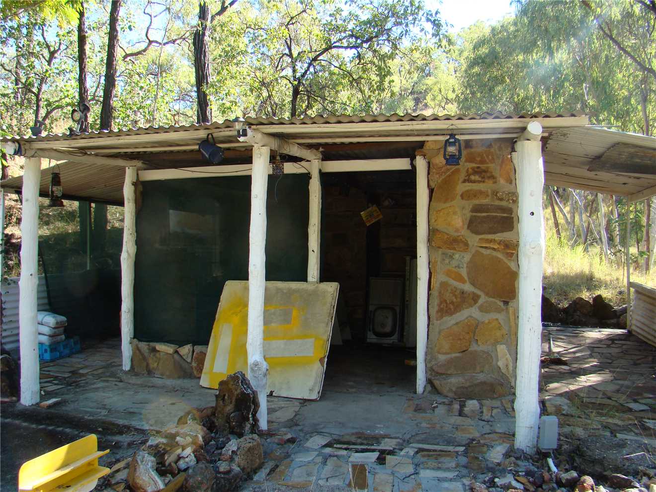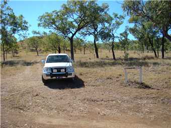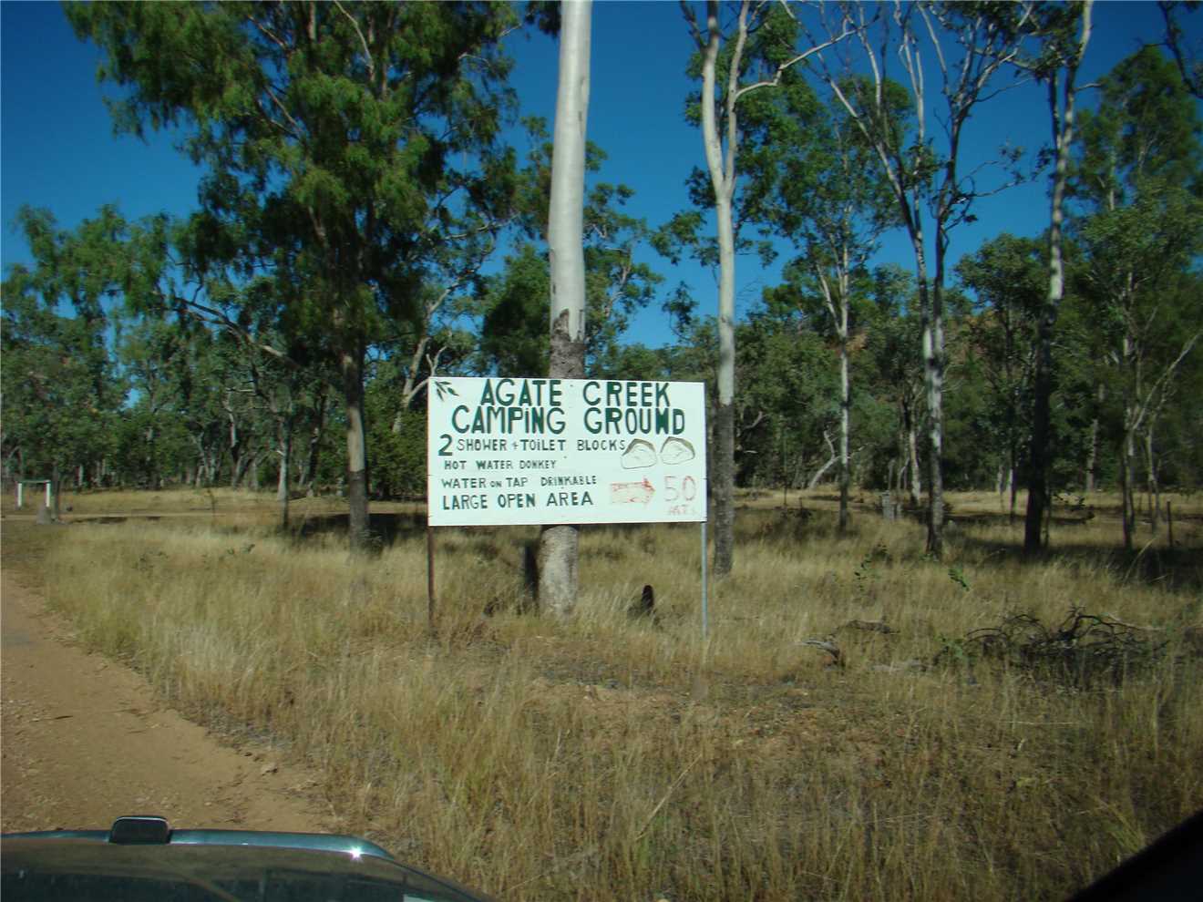We are off and at 15km mark, we hit the gravel road and parts of it shook our fillings out, thank god for the 29km mark, we hit a beautiful sealed section with painted white shoulders, everything you want in a road. At about 1km from Forsayth, we turned right and headed towards the Cobbold Gorge and Agate Creek, after 1 km we were back on the gravel road, but it was not as bad as what we had just experienced, there were still more corrugations, but not as bad as before. Our only problem was the number of cattle that decided to cross the road in front of us on numerous occasions. We arrived at the 1st Agate Creek Caravan park just inside the fossicking area at 9:22am. We decided to drive right through the Agate Creek area to its southern boundary then visit each area on the way back to here. SO we drove another 11kms to the Safari Camp. We passed a sign saying that the Safari Camp was Closed and when we arrived there, there was another sign saying that it was closed, so we were a bit surprised to find 2 camps all setup with generators going, but no humans about. We walked around an overgrown camp, the 'deluxe' cabins were falling down we found a few bits of agate, then we started driving back to the Northern side of Agate Creek, stopping frequently to have a 'scratch around'.