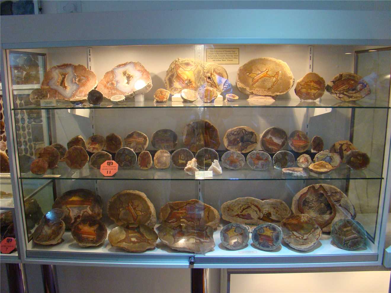 After Marg made my lunch, I drove to the Info Centre, where there was a familiar car parked out the front. Billy had arrived and was inside taking photos of the Ted Elliott Mineral collection. I spoke to Jo (female Info centre worker) about Agate Creek, and she was very helpful. I asked her if Billy was inside checking out the Collection, she said a young man with a camera, I said "Yep, that's him". She showed me what agate rocks looked like, I said that I would bring Marg back later in the day, to check out what we are looking for. On the way back to pick up Marg, I topped up with fuel and then picked up Marg then we arrived back at the Info Centre about 3pm and we spoke to Jo for a good 30 minutes. She said that Billy was surprised that Jo knew he was going to Agate Creek, I wonder who told her. I also left my card on Billy's car, so he knew that I had been there. Anyway, Marg and I did a quick view of the Ted Elliott Mineral collection, as we will be coming back on Monday to take photos etc. Ted's collection is bloody fantastic.