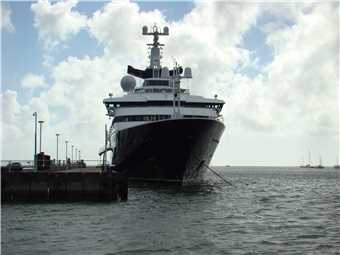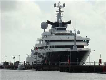 Paul's boat docked on 1st June, I checked all the local newspapers since then and nothing has been said about him or his boat. Question,why is he here? And does he say I will visit your dock, only if you don't give me any publicity. Who knows. Image this. You are walking along the marina and you come across a 416 foot long ship that just snuck into port. Shit, I wander who owns this?