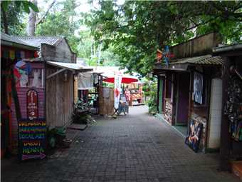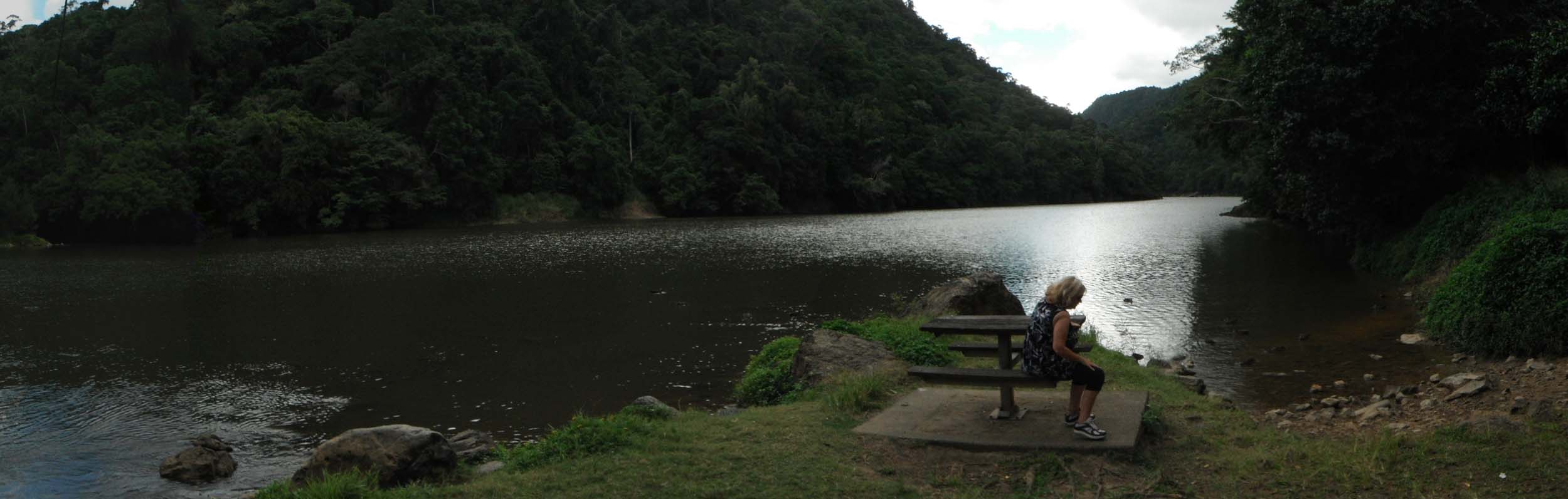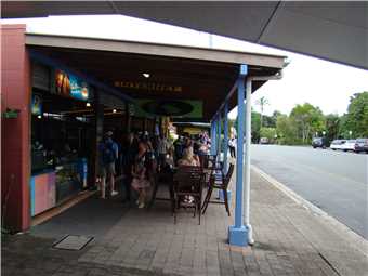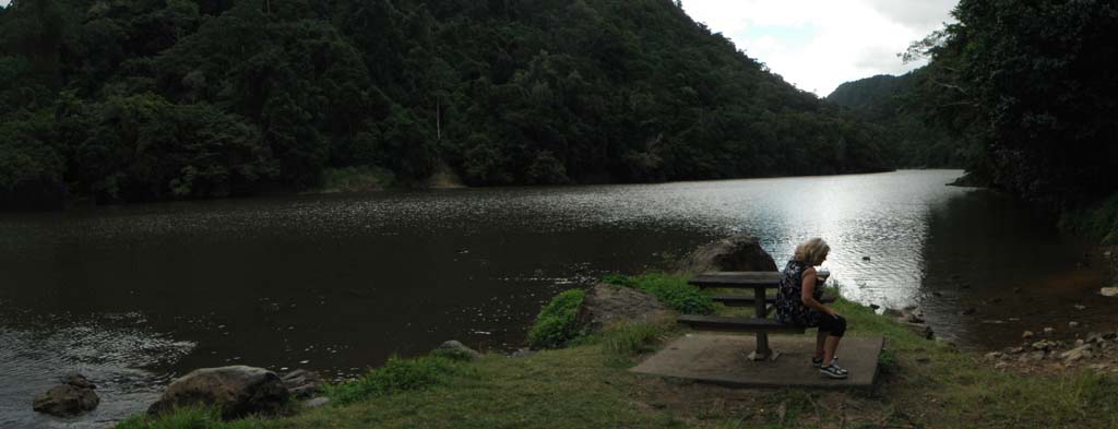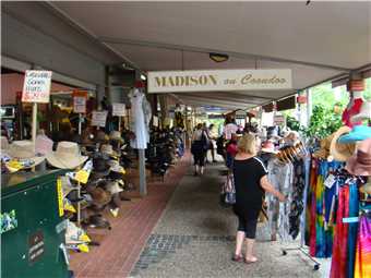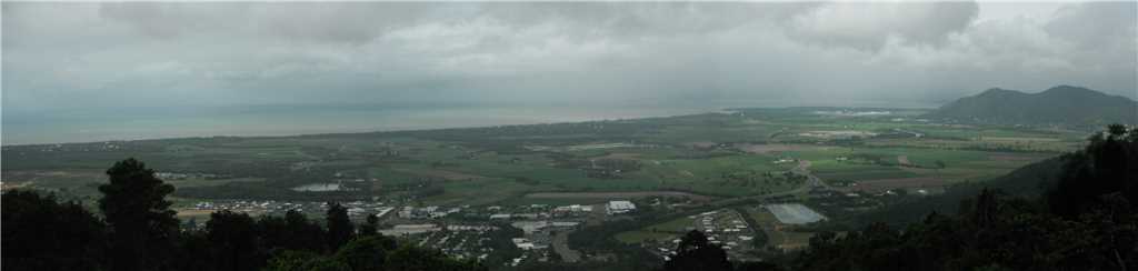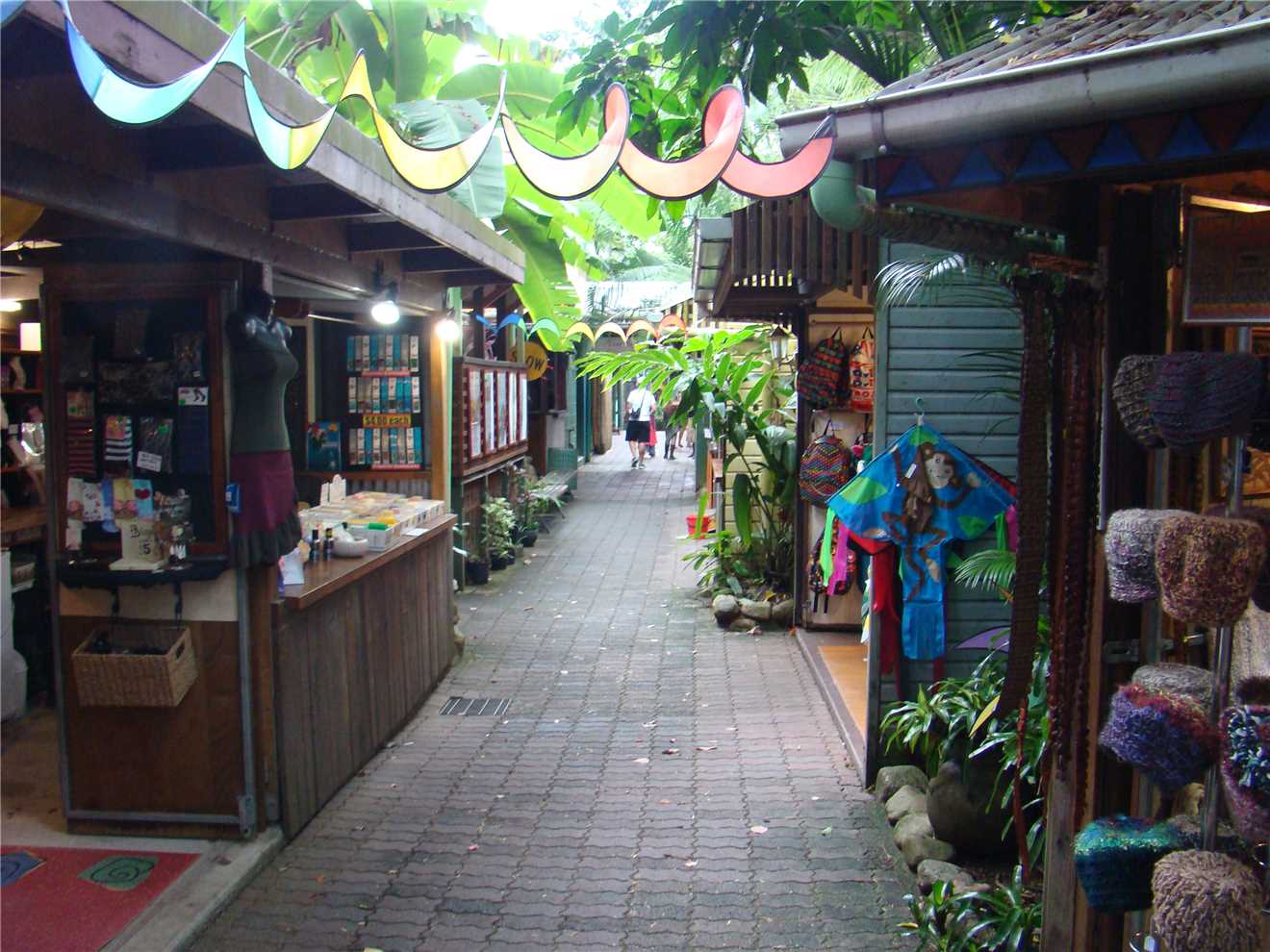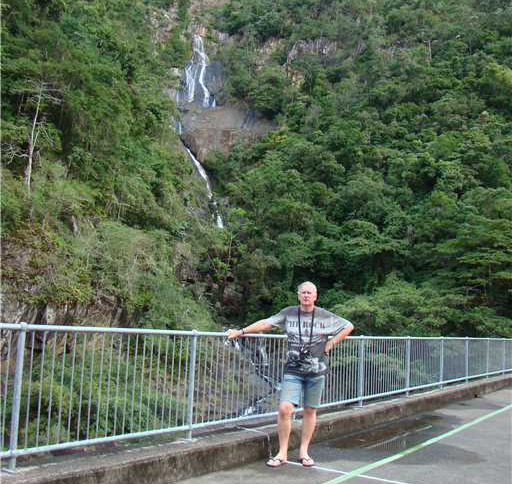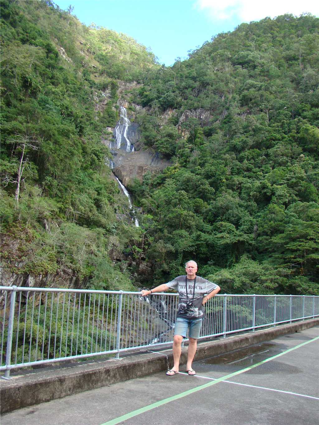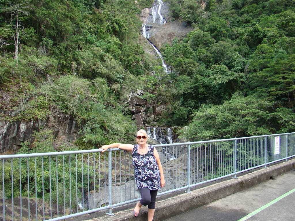 After walking along all the piers that I could sneak onto, I finally drove back to camp, where I picked up Marg and we drove to Kuranda. It rained as we drove up the hill, but as there were roadworks everywhere, I didn't have to speed in the wet. We parked in the public carpark and walked up and down the main street and the side street where the original markets are. We had lunch at the pie shop, Marg had a steak pie, while I had a steak pie and a prawn and scallop pie, which was bloody YUMMA. We bought a piece of rose quartz, some hair clips, a toy for Mont (grand daughter) and of course, I had an ice cream (rum and raisin and choccy). We were there for a couple of hours, believe it or not, we were there 4 years ago and not much has changed. We left and stopped at the Henry Ross Lookout half way down the hill, with great views, even with rainclouds coming over.