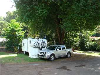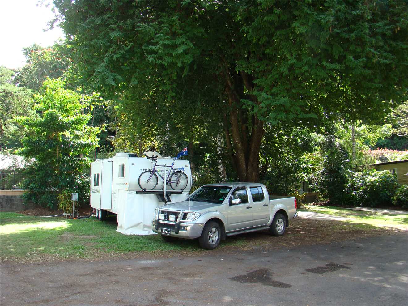 Today was another 'big' trip of 88kms, packing up between rain showers and left at 9:07am. The road was very hilly, especially coming from Kuranda down the mountain, we arrived at Lake Placid Tourist park at 10:41am. We setup camp with power, water and Marg's special room.