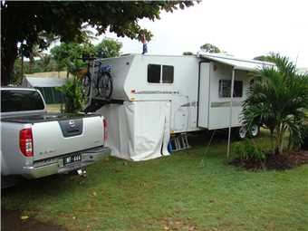 The tyres on our fiver are on the verge of being replaced, so I rang Cairns Pit Stop and they had 4 tyres in stock that I wanted, which were GT Radials Maxmiler EX 215/70R15C, SO I told Russell that I will there in 1.5 hours as I have to jack up the fiver and take the 4 wheels. I emptied out the tray of the mighty Navara and loaded the wheels in there, then I drove into Cairns, where Russell fitted the new tyres. I drove back to camp and put the wheels back on the fiver. I don't think that Lowndesy would be happy with my pit stop, but the end result was great, 4 new tyres on the fiver. I had a shower and sat outside with Marg and unwound by drinking a chilled refresher or two. Total cost of the new tyres were $772 (4 x $193), more than I wanted to pay, but I wasn't in a position to haggle over the price.