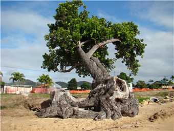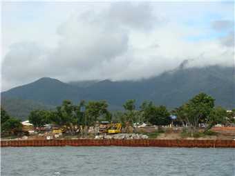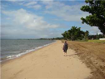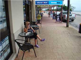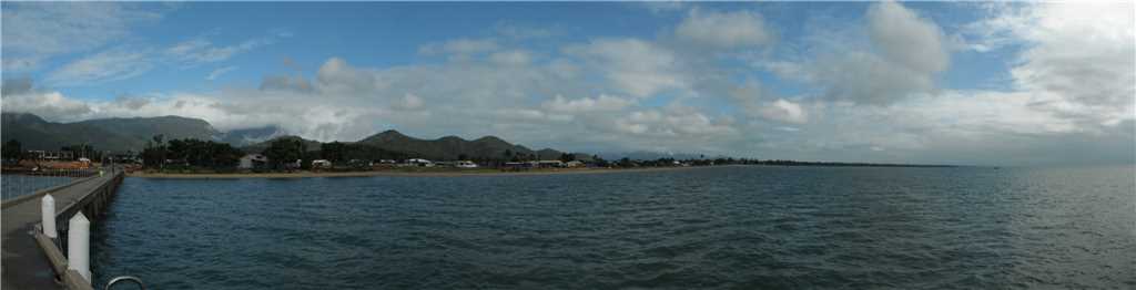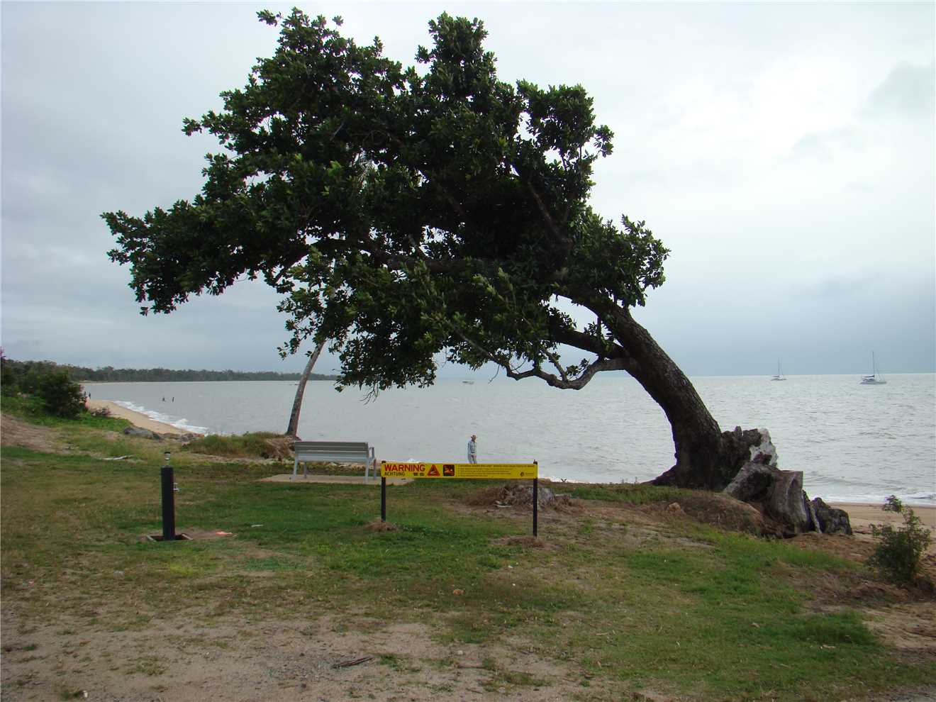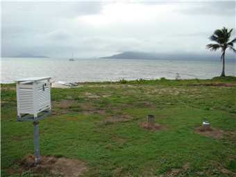 Today's forecast is 25° with isolated showers and windy, again the bureau didn't lie, it nearly got to 25°. As we didn't plan to do anything, we didn't rush, so about mid morning, after we had brekky, we walked along the beach to the Cardwell jetty, probably about 1.5km each way. The council is still planting vegetation after Cyclone Yasi. I photographed a tree that was blown over and is still alive and covered in foliage. There are a couple of dwellings that are still being rebuilt, but the most of the houses that we saw after all back to normal. We watched the weatherman read the Cardwell weather station, he reads it at 6am, 9am and 3pm daily. After our walk, we drove to downtown Cardwell and to the 'new' Port Hinchinbrook estate, there are some nice houses there and then we drove back to town for a coffee. We parked in the main street overlooking Hinchinbrook Island, we sat out the front of the Bakery, Marg had a cream bun and lemonade, while I had a coffee and a cream bun. Marg also got the life story of the 'girl behind the counter', she lived in Victoria and her mum sent her to live with her granny in Cardwell. She appears very happy with her situation.