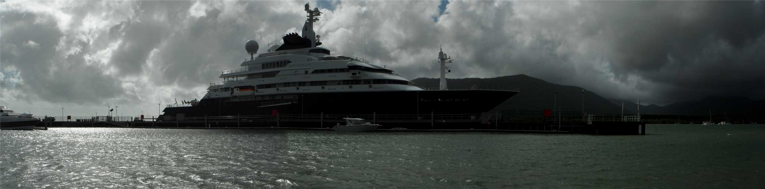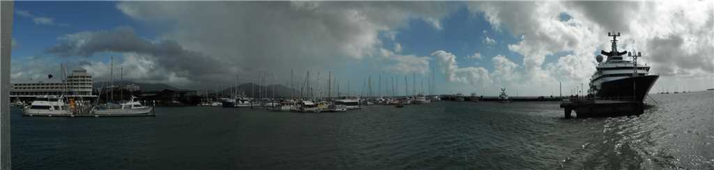 BAD MISTAKE, the Cairns Ironman is on this Sunday and all the marquees, etc just happen to be on The Esplanade at the Marina. I did notice a monstrous 'yacht' moored there and after my thorough investigation, it is