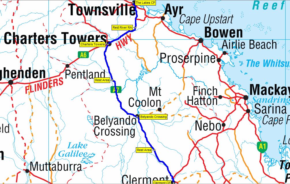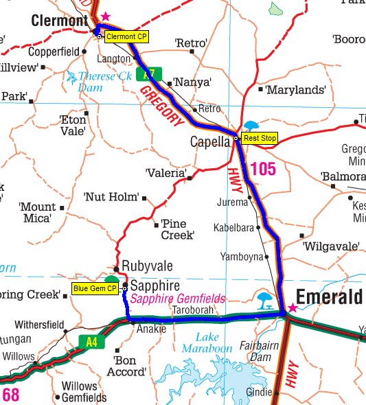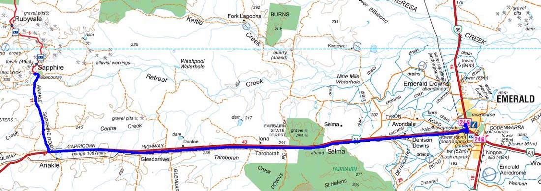 Our route from Clermont to Sapphire,Qld - 163kms.