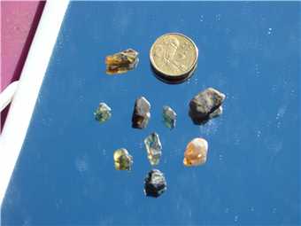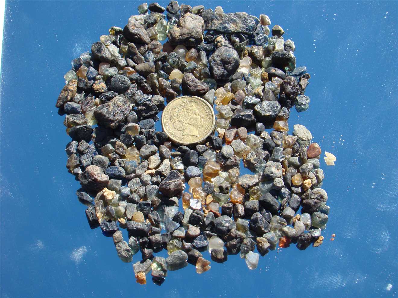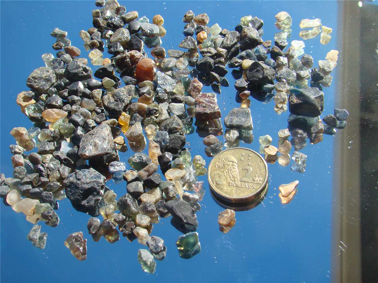 we will toss a coin and if I pick the correct side (heads or tails) then I get the entire 23 enevelopes, I don't gamble so I kindly declined, and we sat down and had our coffees and strudel, meanwhile, Marg said she would take on Gunter's challenge. Gunter agreed, Marg tossed the coin, while spinning in the air, Gunter asked her to pick, Marg choose 'Heads'. Heads it was, Marg had won, Gunter begrudgingly gave her the 23 lucky dip envelopes and we finished our food and headed back to camp, absolutely rapt that Marg won. Marg opened all the 23 envelopes and there were cut gems of amethyst, peridot, blue topaz, zircons, sapphires and garnets, they are very small but look bloody great. So it was a great last day.