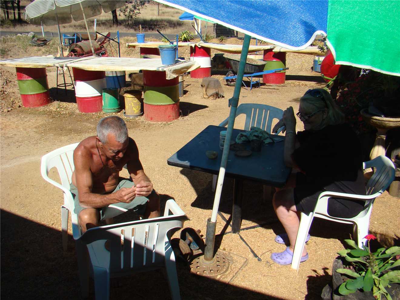 We drove back to camp where Marg showered and changed her clothes, I didn't, then we drove back to Rubyvale to meet with Janine and Errol from our fossicking forum for a chat and more coffee. It was another very pleasant time spent with them. We said goodbye until this time next year, when we hope to visit them again,