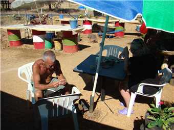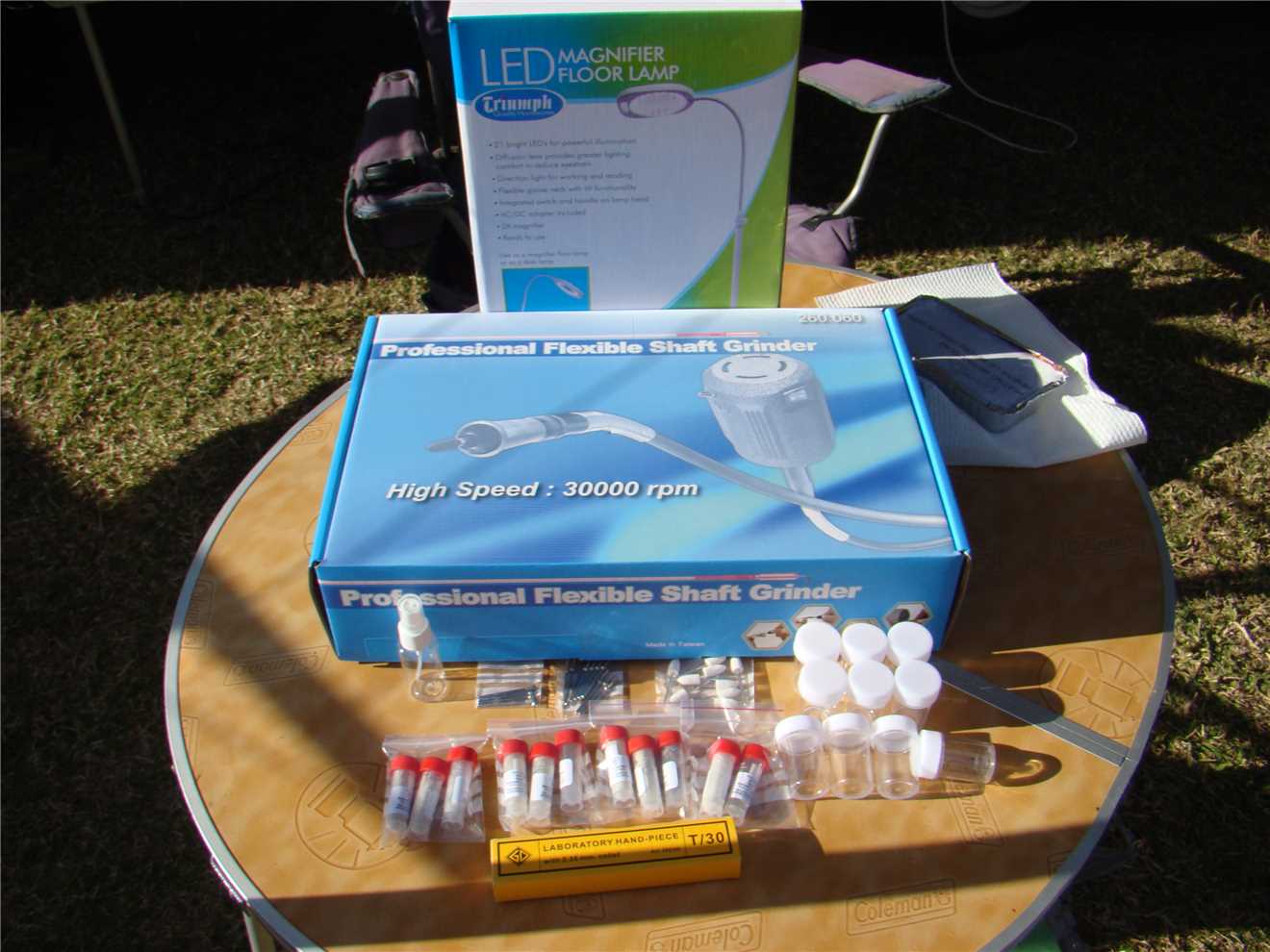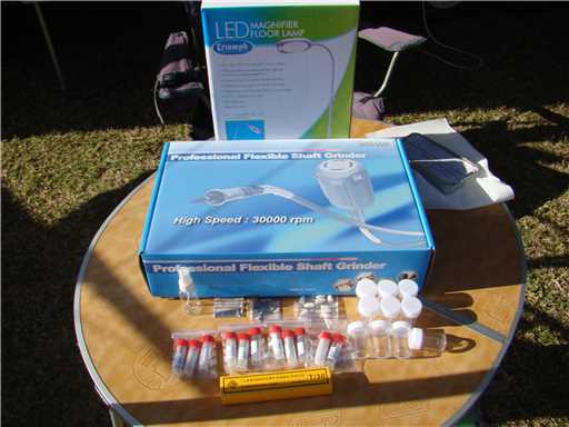 We left camp at 8:45am and followed Donna's (she was our contact from the Lapidary Club) instructions to her house, we arrived there without any dramas, where we met Donna and Steve. Steve was the man who showed Marg the basics of skin polishing. I stayed for about 15 minutes, tried to get reception on my modem, but couldn't, so I drove back to camp. As I was sitting in the sun, I heard the sound of a dentist's drill, it was Les in the caravan opposite us, so I walked over and sure enough he was skin polishing, spooky hey. I told him that Marg was being shown skin polishing, as we speak. Les had done the same course last year while he was here. About 11:40am, I drove back to pick up Marg, she was rapt with the basics that Steve had shown her.