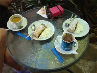 As I may have said in the previous days that Max's premises just happens to be over the road from Gunter's Muggachinnos, so Jamo, the 'Strudel Boy' ordered coffee and cherry strudel, while 'Strudel Girl' had coffee and apple strudel, before driving back to camp. For the remainder of the day, Marg had a nanna nap, while I watched a couple of episodes of Criminal Intent.