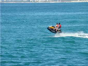 The jetski getting air.
