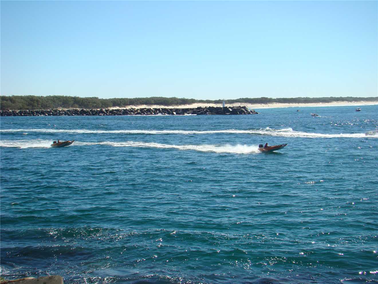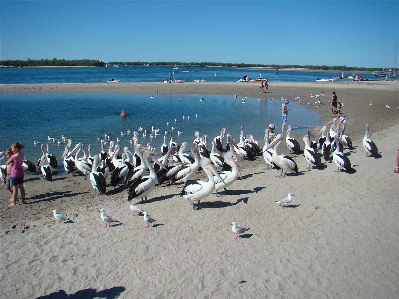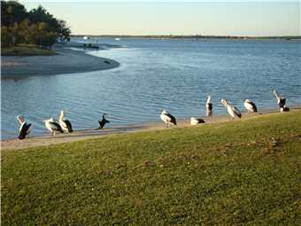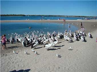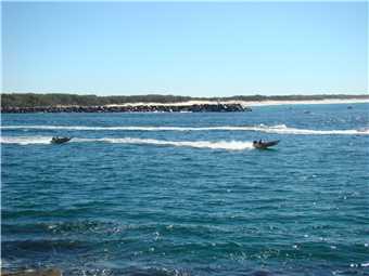 As I am writing this, it is currently mid afternoon, Marg is having a nanna nap, while I am sitting on my chair on the beach in the shade watching the activity on the Broadwater and there is heaps, the 2 Jet Boats filled with tourists, are doing 360s out the front of our park, the Seaworld seaplane has just taken off again, there are a squillion boats of all types (yachts, jet skis, cruisers, speedboats etc). There are 2 labradors retrieving balls that their owners are throwing into the water, there are 2 fisherman fishing in front of me, one has actually catch a fish, it looks like a flounder. There's a guy with a long tube getting something from the sandbank, must be bait of some type, there are 3 families with little kids making sandcastles, while others are playing in the water. So there is heaps of action.