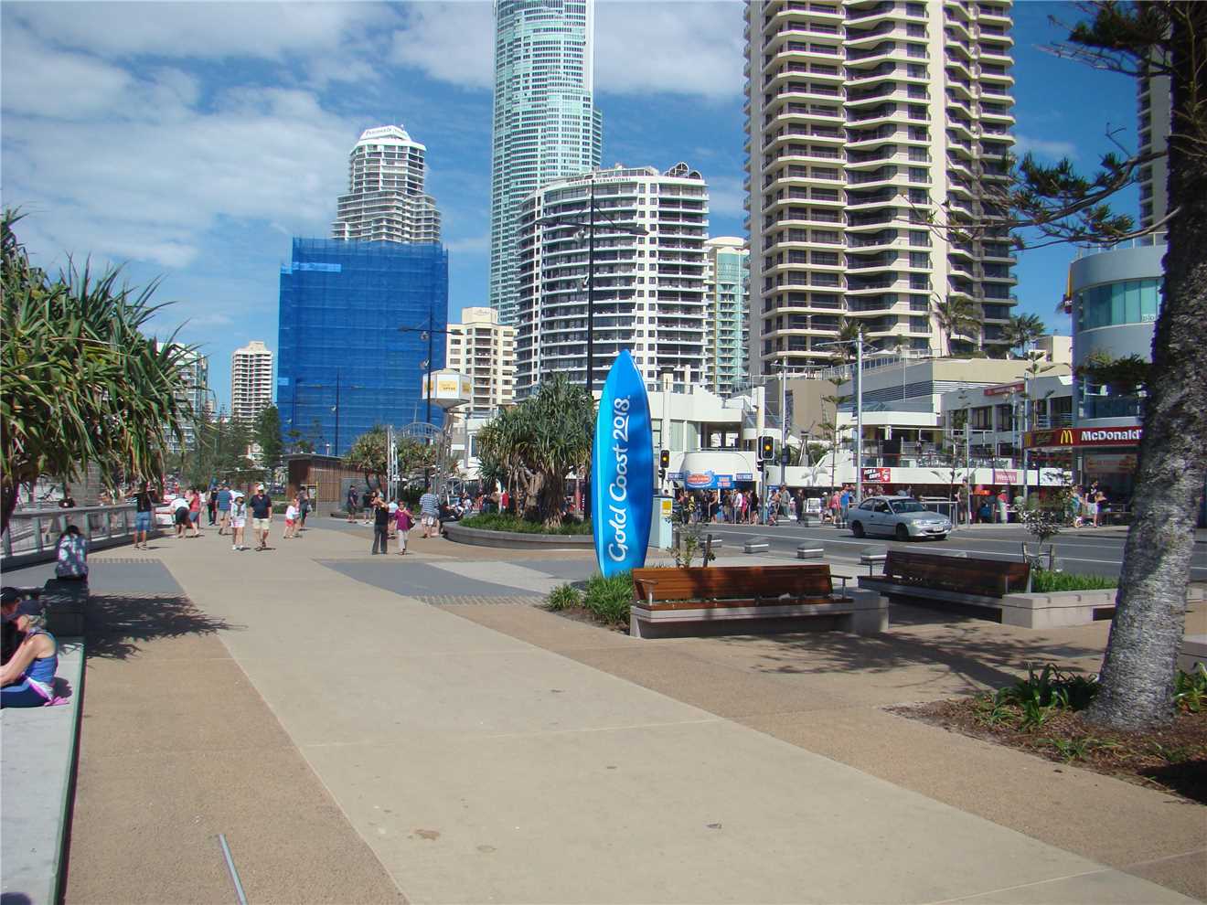 Surfers looking south towards Cavill Ave.