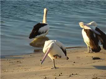 After lunch, we took the mighty Navara to the local carwash, opposite Harbourtown, where we cleaned the inside spotlessly, hosed the floor mats (they are removeable) and rinsed the mighty Navara. Back at camp, Marg cleaned the bits that still needing cleaning, as I walked over to the beach to watch Laurie sail his RC yacht, it was bloody marvellous. So realistic. As it turns out, after talking to Laurie, we had both sailed in our younger days and had both won Aussie Titles, way back then. After awhile Laurie gave me the RC, it was great fun sailing his yacht. His RC yacht is over 1.5 meters long with a 2 meter plus mast. After watching Laurie, I walked upto George's playground and sat on the bench seat about 3 meters from 9 Georges and sat there and took numerous photos. I am still trying to get the photo of George landing on the water. I have one photo, but would love a better photo.