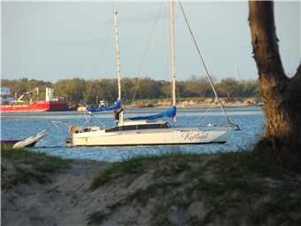 It was a normal cool night, so I am still using my sleepingbag as a doona and was as warm as toast, and we slept like babies. I awoke about 7:30am while Marg awoke about 8:00am. I had brekky and went riding at 9:00am to Surfers and then to the Spit and upto Runaway Bay, while Marg did skin polishing and finished her sapphire. It looks really nice. Marg's pretty talented.
