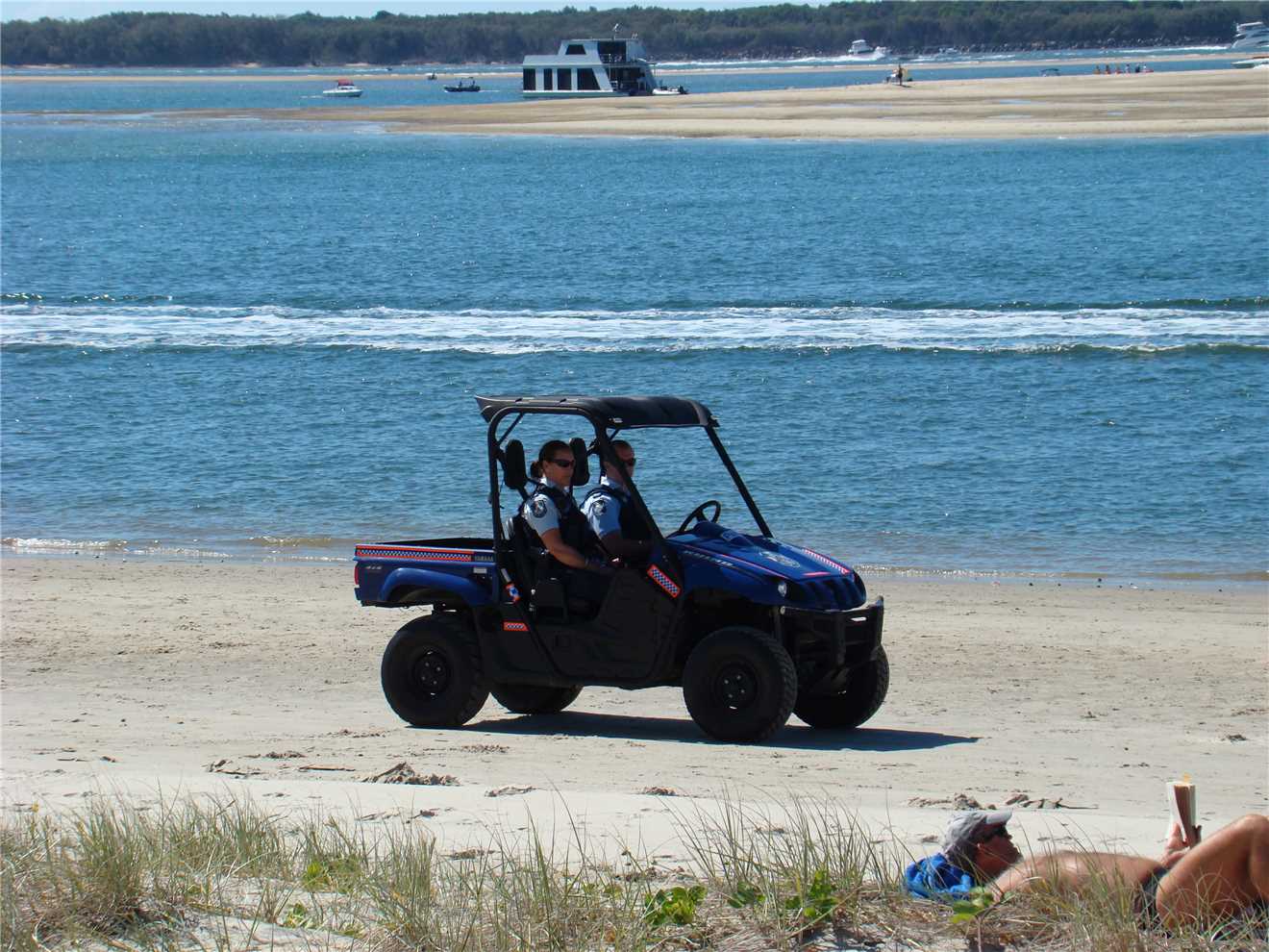 When Lukey left, I changed into 'Cycleman' and went riding over to Surfers then to the Spit, where I watched the skin diver try and spear the fish, while I was there, he had not caught any. I could see the fish from the rock that I was sitting on. I left the Spit and headed back past our camp on my way to the Runaway Bay marina which was today's turnaround point and then headed back to camp. As I was passing Labrador, I saw the 'Cops on Patrol' in their quad buggy, driving along the beach heading south. I must admit, that I am impressed with their presence. I have ridden 11 times on the Gold Coast and I have seen the cops on 5 different occassions at 5 different locations, which is great.
