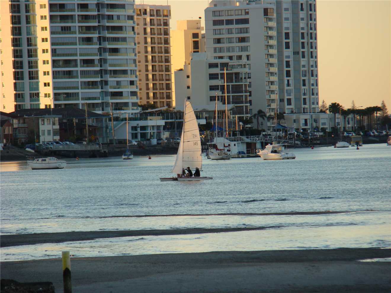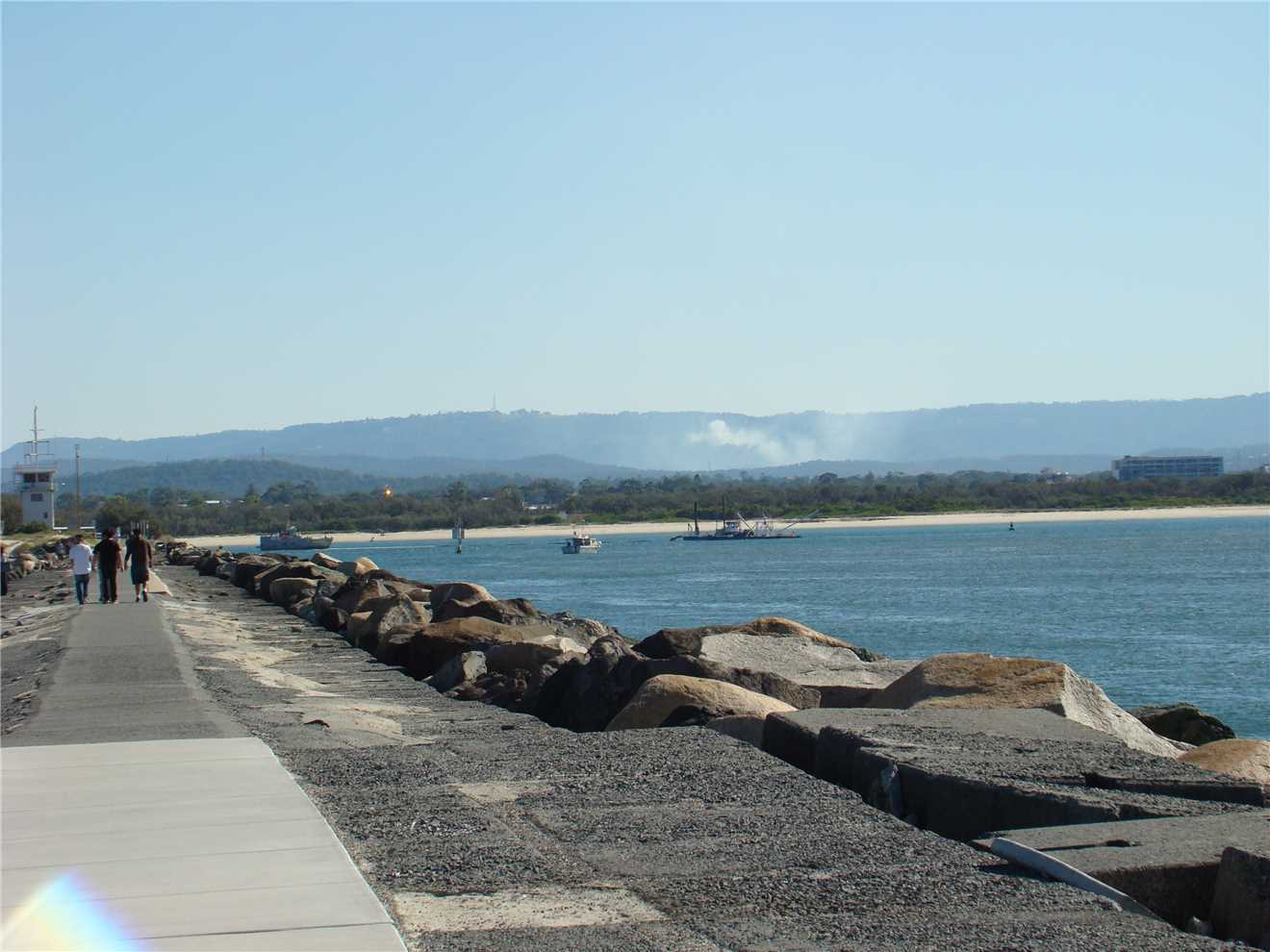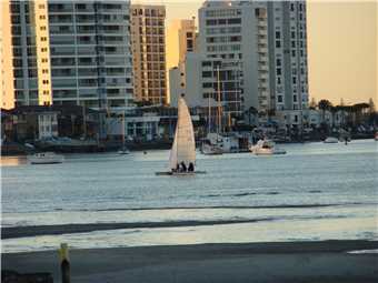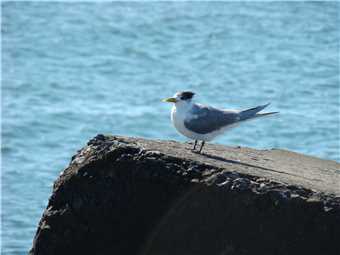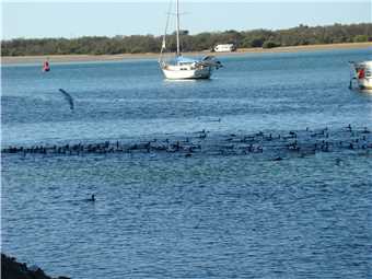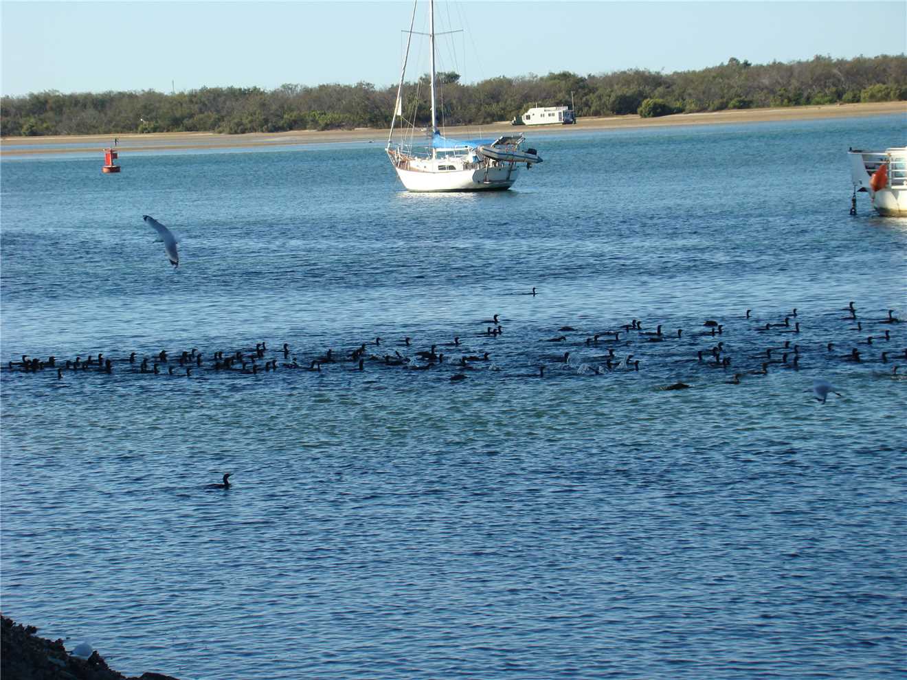 a non breeding Lesser Crested Tern), then I spotted something splashing in the distance, and took some photos and sure enough, it was a whale. While I sat at the end of the Spit, I noticed a school of fish about 20 meters off the rocks, it was amazing. I left the Spit and headed to Angler's Paradise (today's turnaround point) where I ate my banana. On the way back to camp, I came across a lovely catamaran that has moored about 50 meters offshore and appears to be there for the night. Just off Labrador I saw a flock of hundreds of '