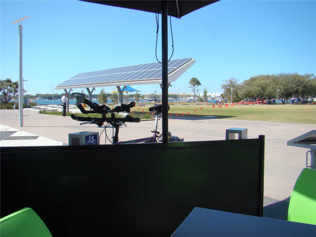 After bingo, we drove to South Park for a coffee at Michels followed by some shopping at Woollies. Back at camp we had lunch and then I went riding, while Marg did more skin polishing. I did my normal ride which is down to Surfers, stopped on the esplanade protruding out over the beach, take a photo or two then ride back along the shared path and off to the Spit along the coastal gravel path, I haven't spotted any more snakes since the baby brown last week. At the end of the Spit, I took a photo of my friend (
