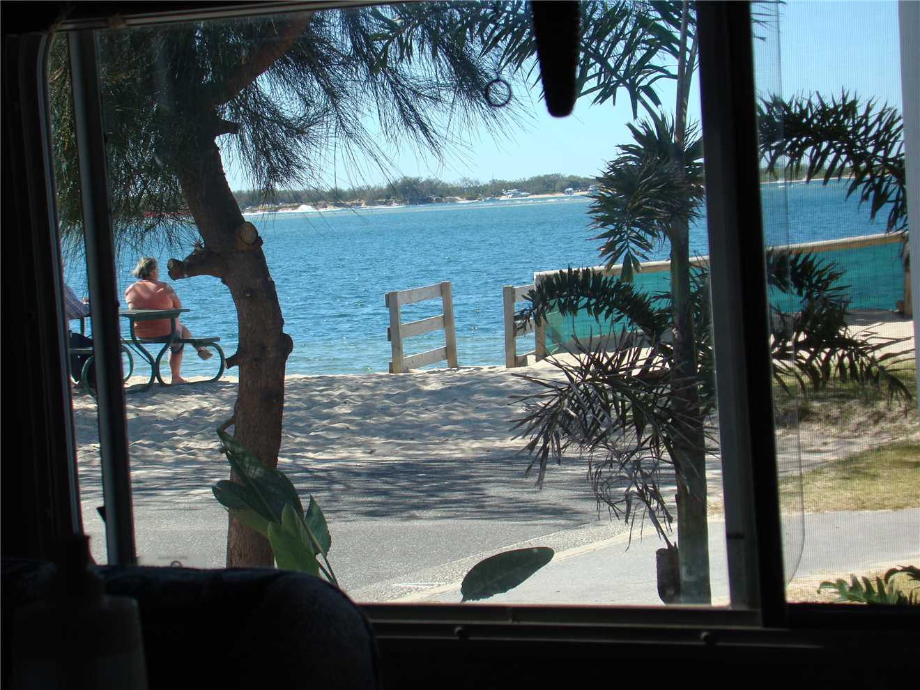 It was another mild night, I only used 2 blankets and Marg slept very well, but I got a bloody cramp in my left calf and nearly died, I was in absolute agony. After doing a "Lazarus" I finally got rid of the cramp and went back to sleep, awaking about 6:30am, so we watched "Sunrise". We had brekky and got ourselves organised and left at 8:30am, we arrived at "The Sharks" a couple of minutes later.