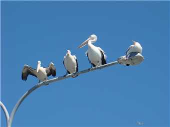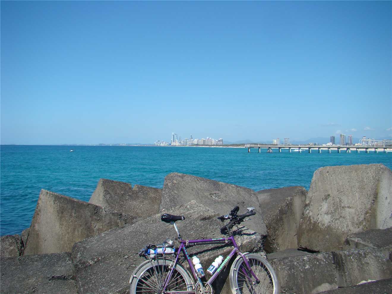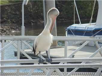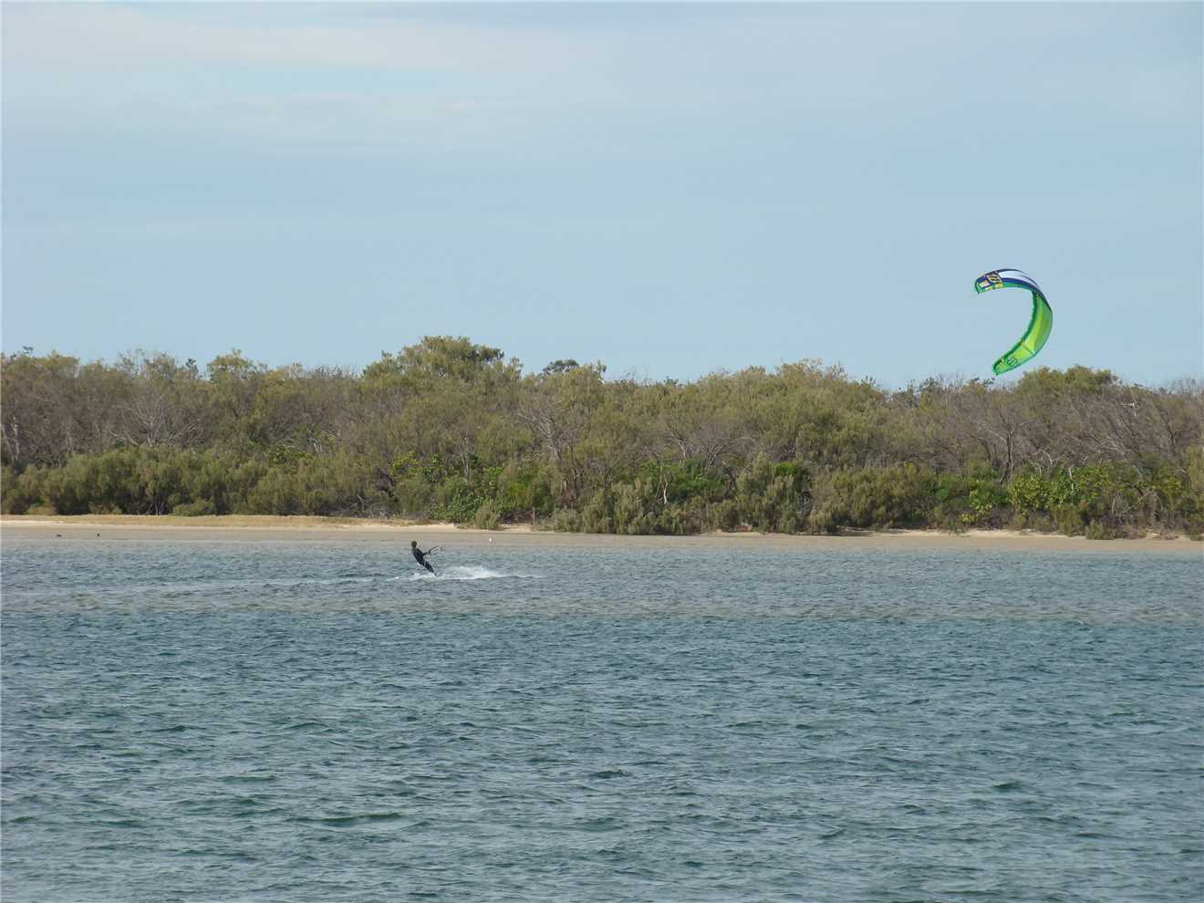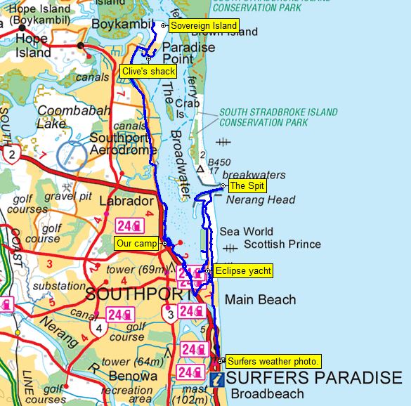 When bingo finished we drove back to camp and had lunch then Marg did her skin polishing, while I braved the elements, it was a steady 28+ kph. I rode to Surfers, took my weather photo, then out to the Spit where the painters were painting the beacon at the end of the Spit. I stopped at Cafe Rockpool for a coffee before heading to Angler's Paradise then stopped at Labrador to watch the 'kite surfer'. At the boatramp in the caravan park, I photographed George sitting on the railing at the Coast Guard. Later in the arvo, I watered our lawn.