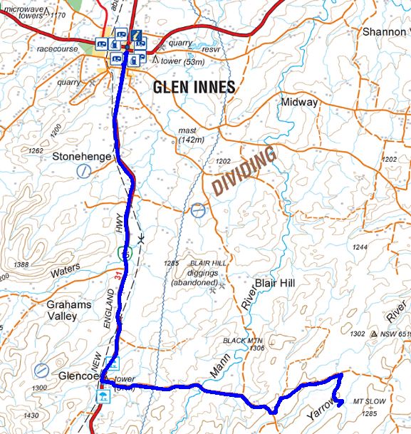 Our route from Casino to Glen Innes - 220kms.