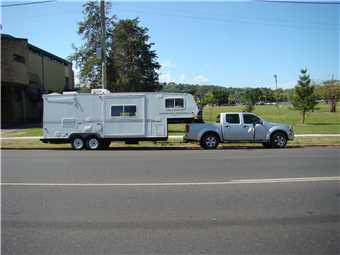 It was a cooler night, I pulled on my 2nd blanket just below dawn. I got up about 6:00am and showered and by 7:00am, Marg was awake. I had brekky and started to pack up, this took awhile as I had all our fossicking gear to pack as well, as last night I couldn't be stuffed. We left Casino Resort at 9:00am and headed along the Bruxner Hwy towards Tenterfield, between us and Tenterfield were the Great Dividing Range and on some steep ascents, I was down to 2nd gear but pulling constantly. Our first stop was at Tabulam which was 56kms from Casino. I was sorta forced to stop there as I had a B double sitting on my bum. After 72kms, we stopped in Tenterfield, we didn't see the Tenterfield Saddler though. We had another 92kms to our destination. We arrived in Glen Innes at the Fossicker caravan park at 12:15pm. We paid for our 6 nights ($81 at $27 per night plus our 3 night credit from last year) were given site 10, which was an easier site to back onto. It was gusting upto 65kph, so the awning is still rolled up, we will set that up when the wind dies down, if it does. As we are here for 6 nights, it was a full setup minus the awning. This took a couple of hours.