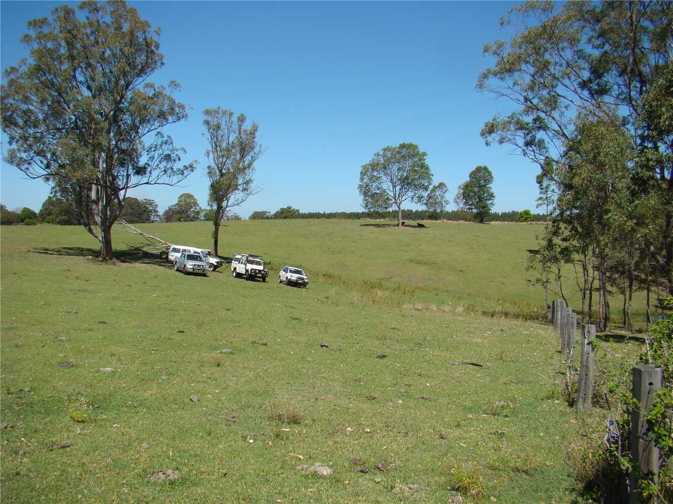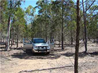 We headed west along Bruxner Hwy for 22kms, then turned left into Bulmer Rd (-28.846753, 152.844450), after 7.9kms you turn right (-28.903707, 152.819813), about 0.8km on the left is Steve's farm (-28.905013, 152.811632), Bruce put our money (Steve charges each person $3 to fossick) in an envelope and placed it in his letter box. He has a Golden Retriever and an old German Shepherd, both dogs barked and walked out to greet Bruce but appeared friendly. We continued to the gate (-28.910023, 152.798582) 1.4kms on our right, leave the gate as you find it, you drive over his paddock to where the 3 trees (2 live and 1 dead one in the middle) are, about 450 meters from the gate (-28.908328, 152.798260).