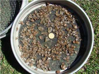 You will see a wire fence about 50 meters away to the west. See my photos below. The Labradorite is on the other side of the wire fence, you will see some scratchings, but dig wherever you want. We dug in the same spot for the 2 hours, which ended up about 1 meter square and about 100mm deep. The Labradorite is in the top 100mm of soil. Marg reckons that we averaged over 20 pieces per sieve and upto 50 pieces. See the photo of our haul below.