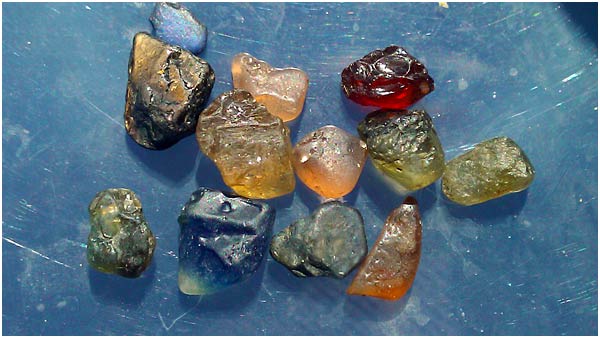 We found some small sapphires, small garnets and small zircons and spinel.