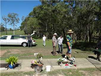 Jodi arrived in a '57' Chevy, bloody nice. The bridal party looked beautiful, well the girls and the pageboy did. I don't know about the boys. The Boomerang Farm is surrounded by rainforest, it is a very beautiful, peaceful venue. The ceremony was over the 1st fairway with a garden setting amongst the trees overlooking a flowing brook. In normal circumstances, Marg and I would be in the creek with our sieves, fossicking, but we thought we better not today. We all sat around on seats and benches watching the celebrant do her thing. After the ceremony, while the bridal party had photos taken, the guests stood, sat, drank, talked and some played games (skittles, croquet, bocce etc). After all this frivolity, we walked over to the barn where the rest of the wedding took place. The barn was built in 1902 and is a barn, it was magic (but I am probably a tad biased). The food was excellent, I even danced which is not my norm, everyone mingled which was great. The speeches given by Jay and Luke went for over 15 minutes and were very entertaining. I always think of our 2 sons as our 'little boys', but seeing them standing there giving their speeches, just shows that we have produced 2 lovely men.
