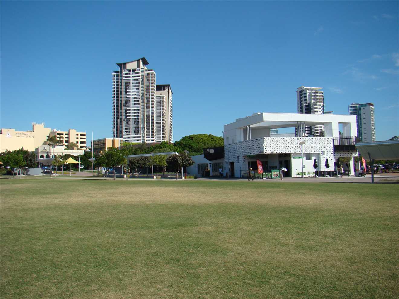 The Surfers Paradise SLSC surrounded by High Rises.