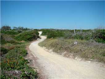 The end of the concrete shared path and the start of the gravel shared path.