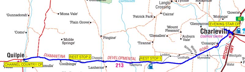 at a Rest Area(10:08am), after another 55kms, we arrived at the Channel Country CP at 10:56am. Peter showed us to our site 25, we did a partial setup which is